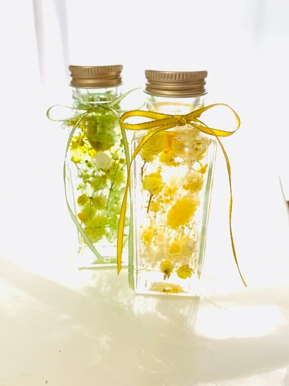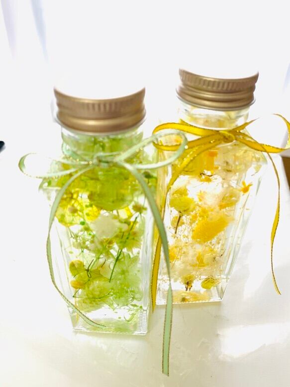 Summersale*ペアで可愛い初夏のライムグリーンとサンイエローのハーバリウムボトル