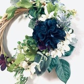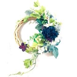 初夏にそよぐグリーンとネイビーカラーのダリアと小花の爽やかなリース