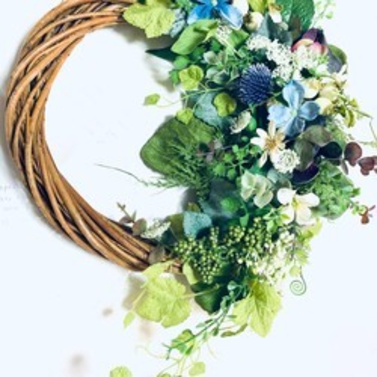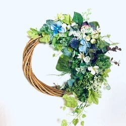 初夏の新作*早割*ブルーリボンが風に舞う涼やかなアーティフィシャルフラワーリース
