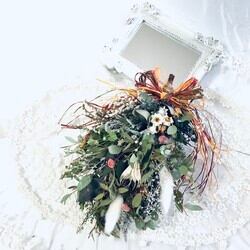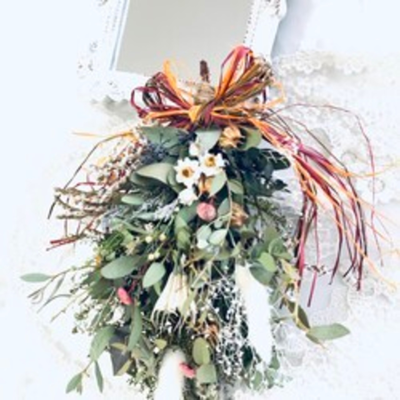 ドライフラワー花材を使用し癒しの空間の彩りにスワッグをデザインしました。