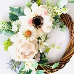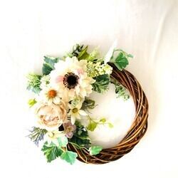 初夏SALE*シャンパンローズとホワイトアネモネの爽やかなアーティフィシャルフラワーリース