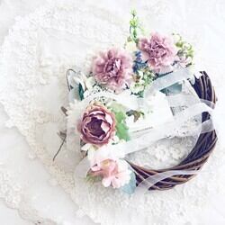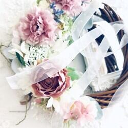 新作*人気のモーヴカラー*ウェディング*ギフト*ウェルカムフラワーに優しく咲くお花達のフラワーリース