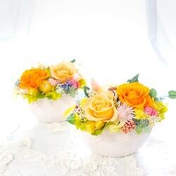 即日発送可能*綺麗なレース模様の磁気花器プリザーブドフラワーアレンジ