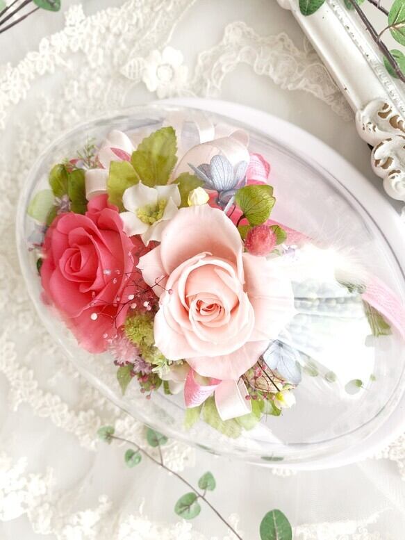 『新作WEEK2021』オーバル型蓋付きブライダルピンクのプリザーブドフラワーアレンジ2way