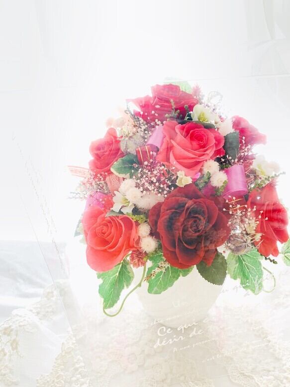 『新作WEEK2021』 大切な日の贈り物*豪華なプリザーブドフラワーアレンジ*ケース付き