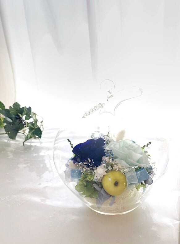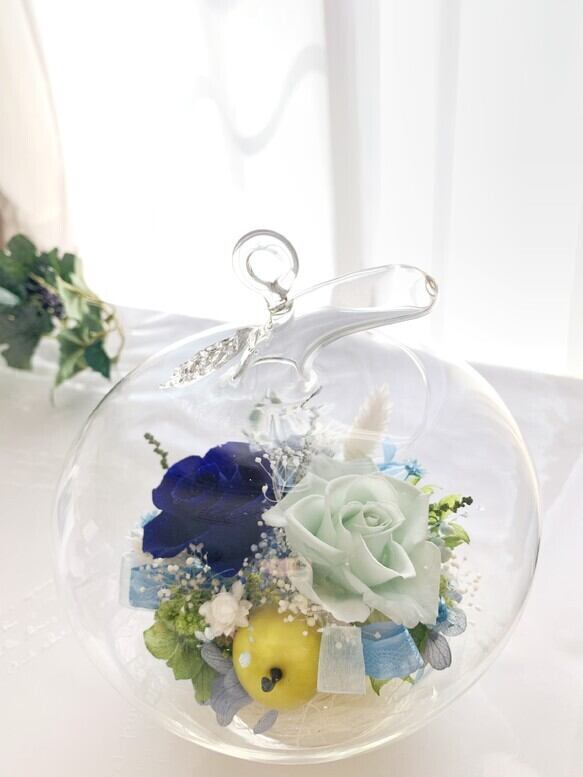 結婚式*大切な人に贈るブルーローズ青い林檎のプリザーブドフラワーに想いを込めて。
