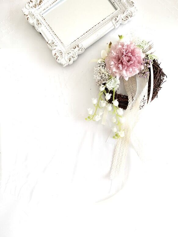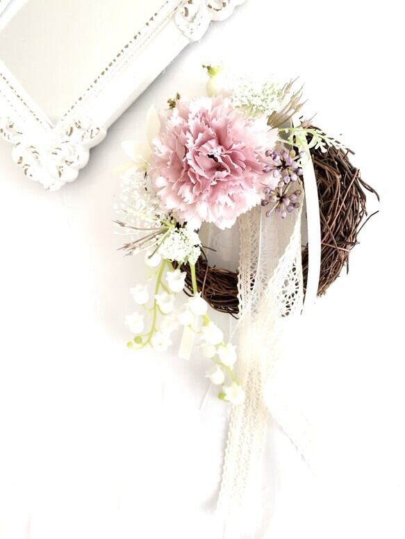 母の日フラワー2021*カーネーションとスズランのお部屋に馴染むミニリース