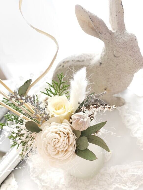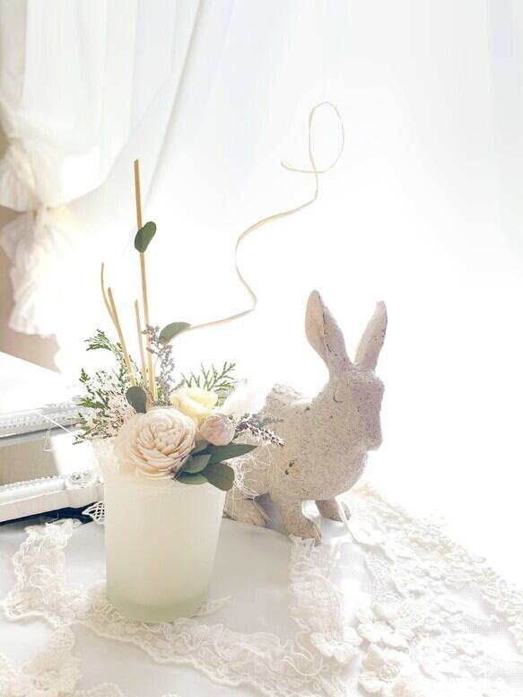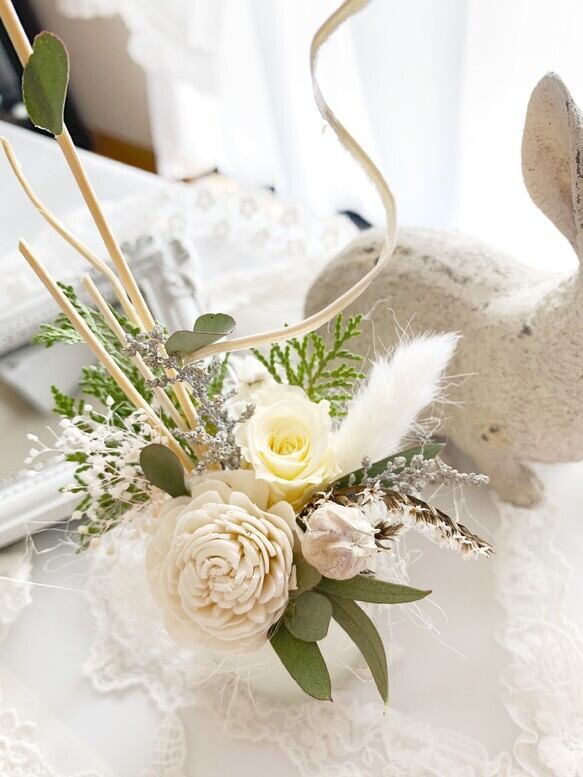 白いソラローズや白枝にそっとお好きな香りのアロマを吹きかけてお楽しみ頂けます。