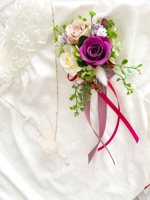 新作コサージュはプリザーブドローズのお洒落なコサージュ゜゜・*:.。..。.:*・・*:.。. .。.:*・゜゜・*