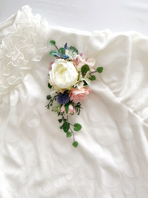 薔薇とナチュラルなお花が流れるコサージュ2way