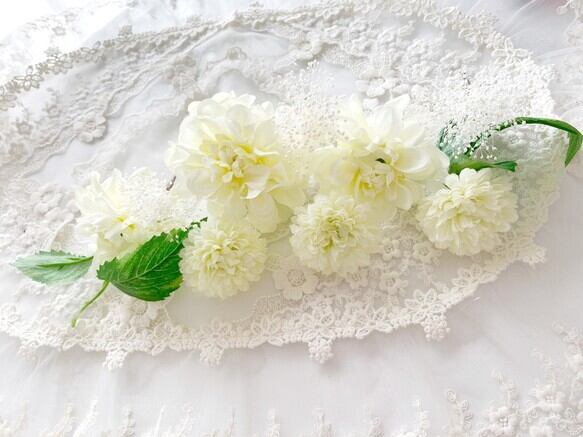 ふわふわと可愛いプリザーブド加工したかすみ草と高級アーティフィシャルフラーのマムとダリアで