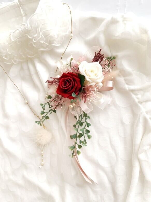 春の新作は プリザーブドフラワーとアーティフィシャルフラワーを使用したコサージュ*・゜゜・*:.。..。.:*・・*:.。. .。.:*・゜゜・*