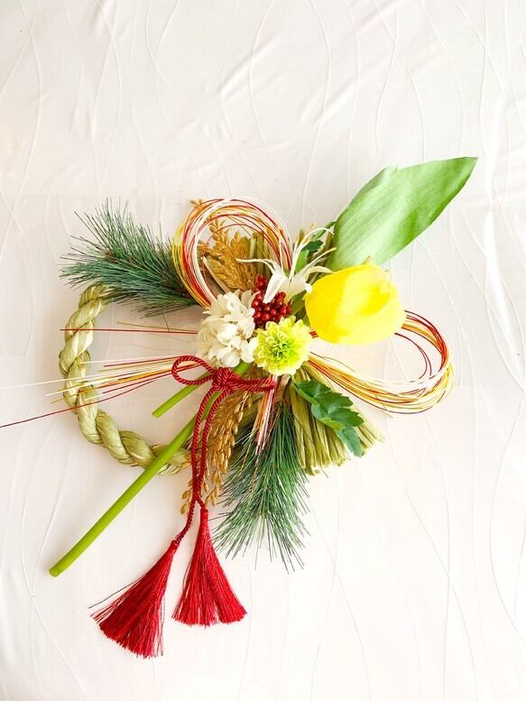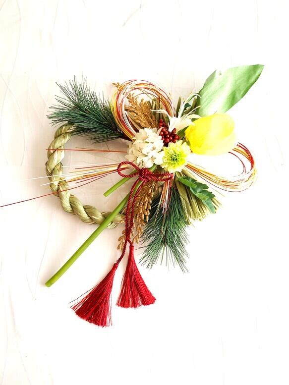 新作しめ縄飾り*幸せな黄色いチューリップとピンポンマムのお正月飾り