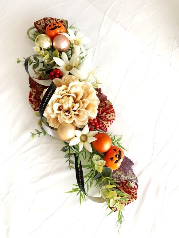 アーティフィシャルフラワーを使用して毎年飾れるガーランドをデザインしました。形もクレッセントにしたり自由に変えられます*:.。..。.:**:.。. .。.:*・゜゚・*