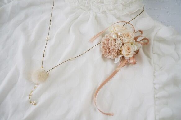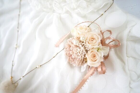 ふんわりマムとシャンパンローズのお洒落なアンニュイコサージュ