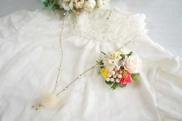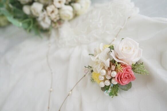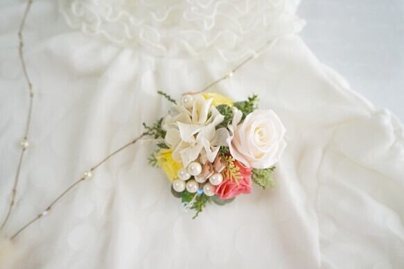 今春一番人気*華やかなパールとプリザーブドローズのコサージュ