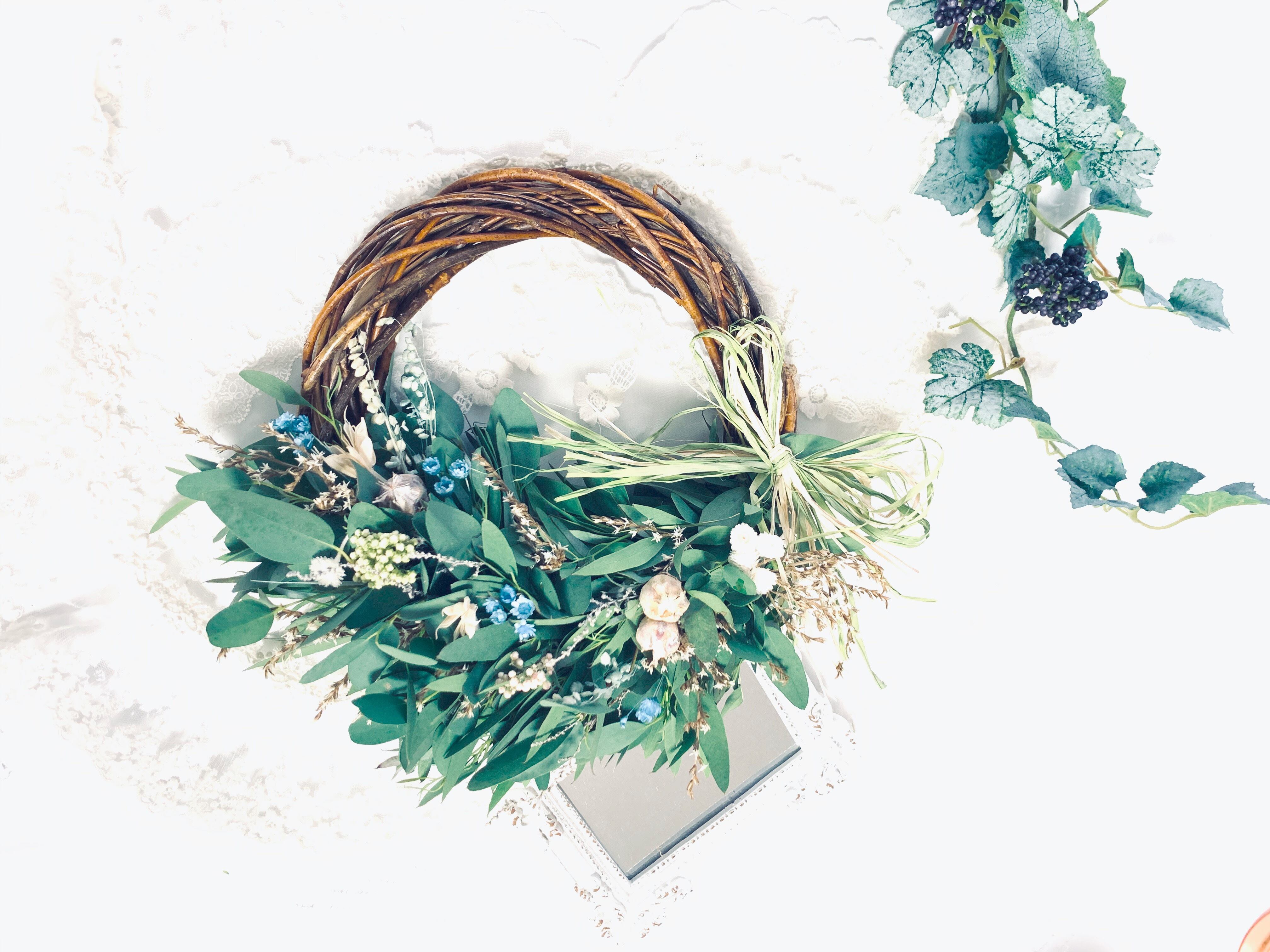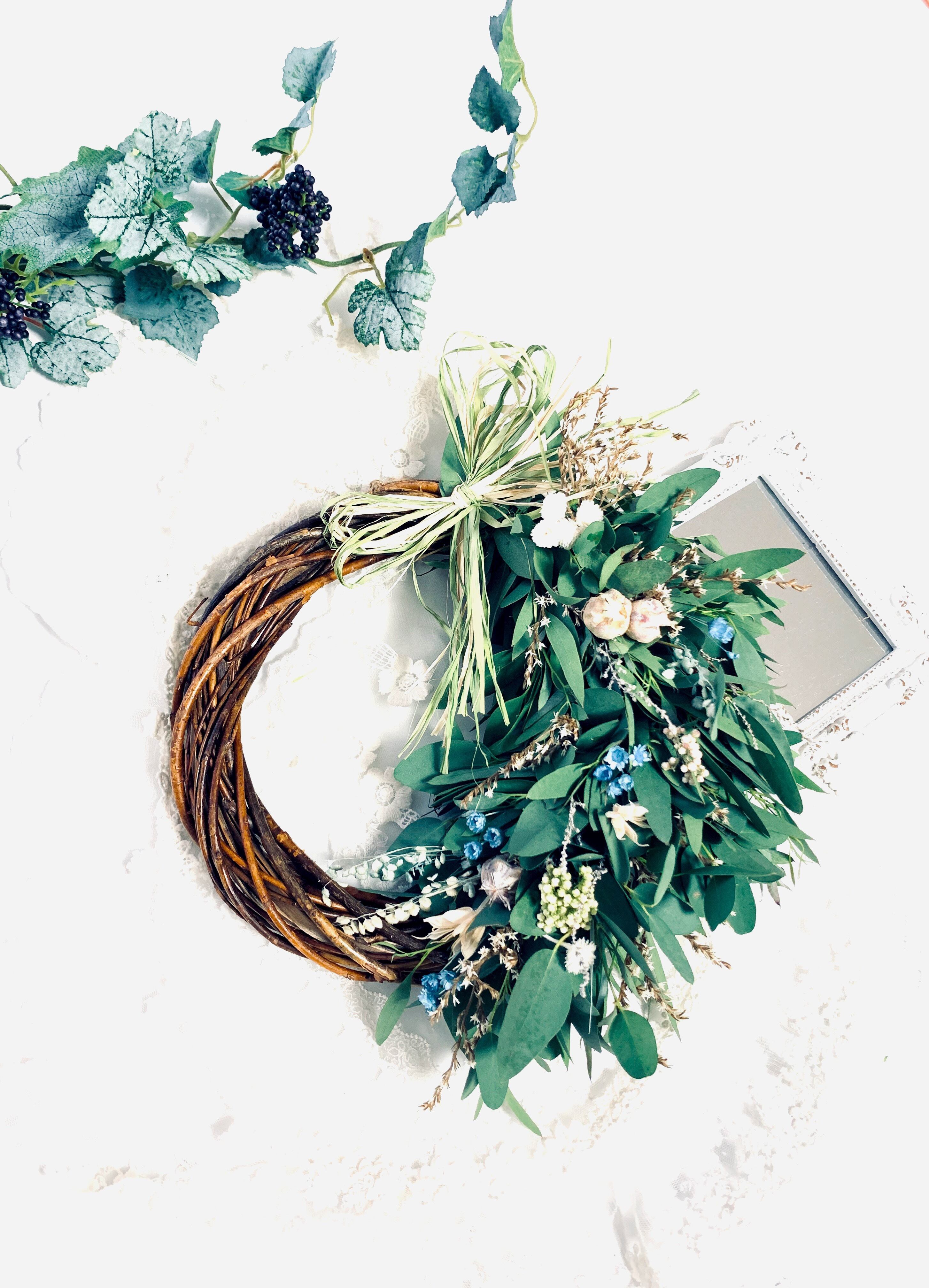 夏の新作*横と縦に飾れるユーカリの2wayリース