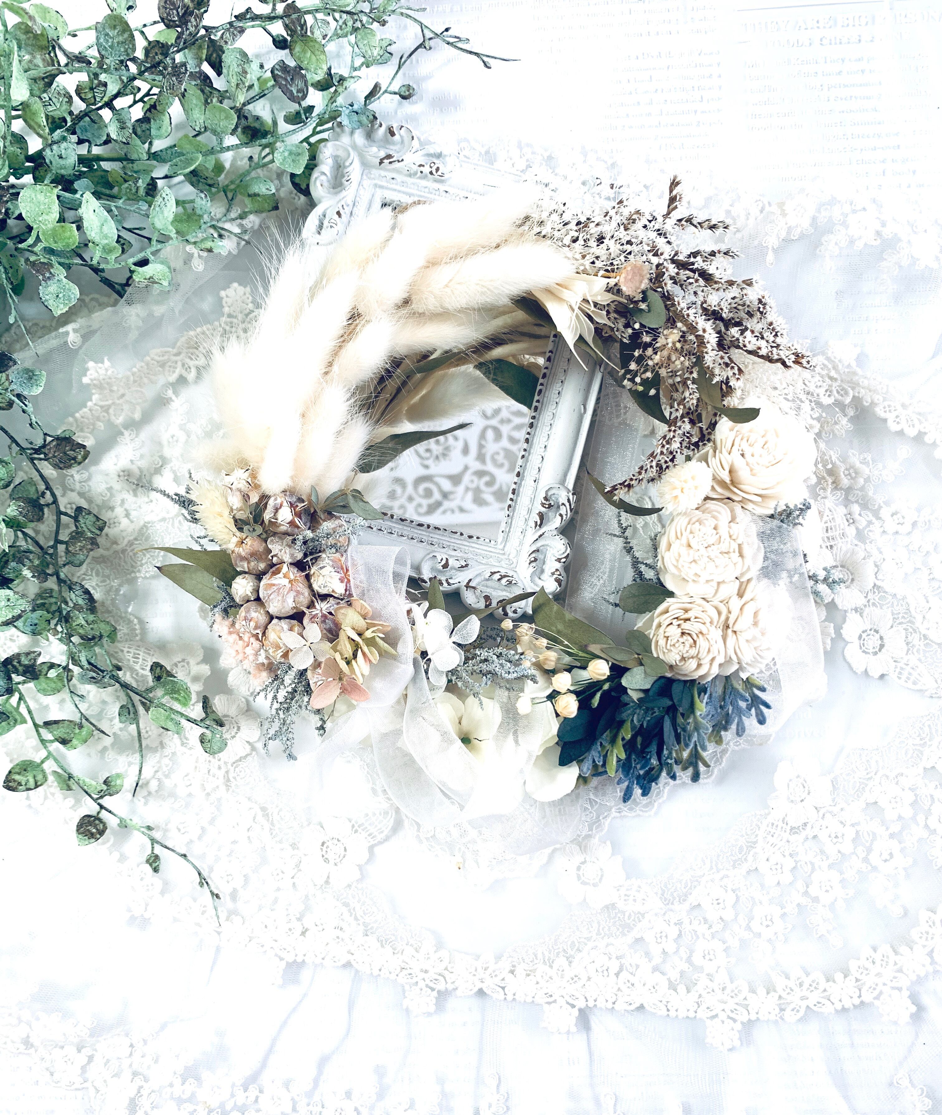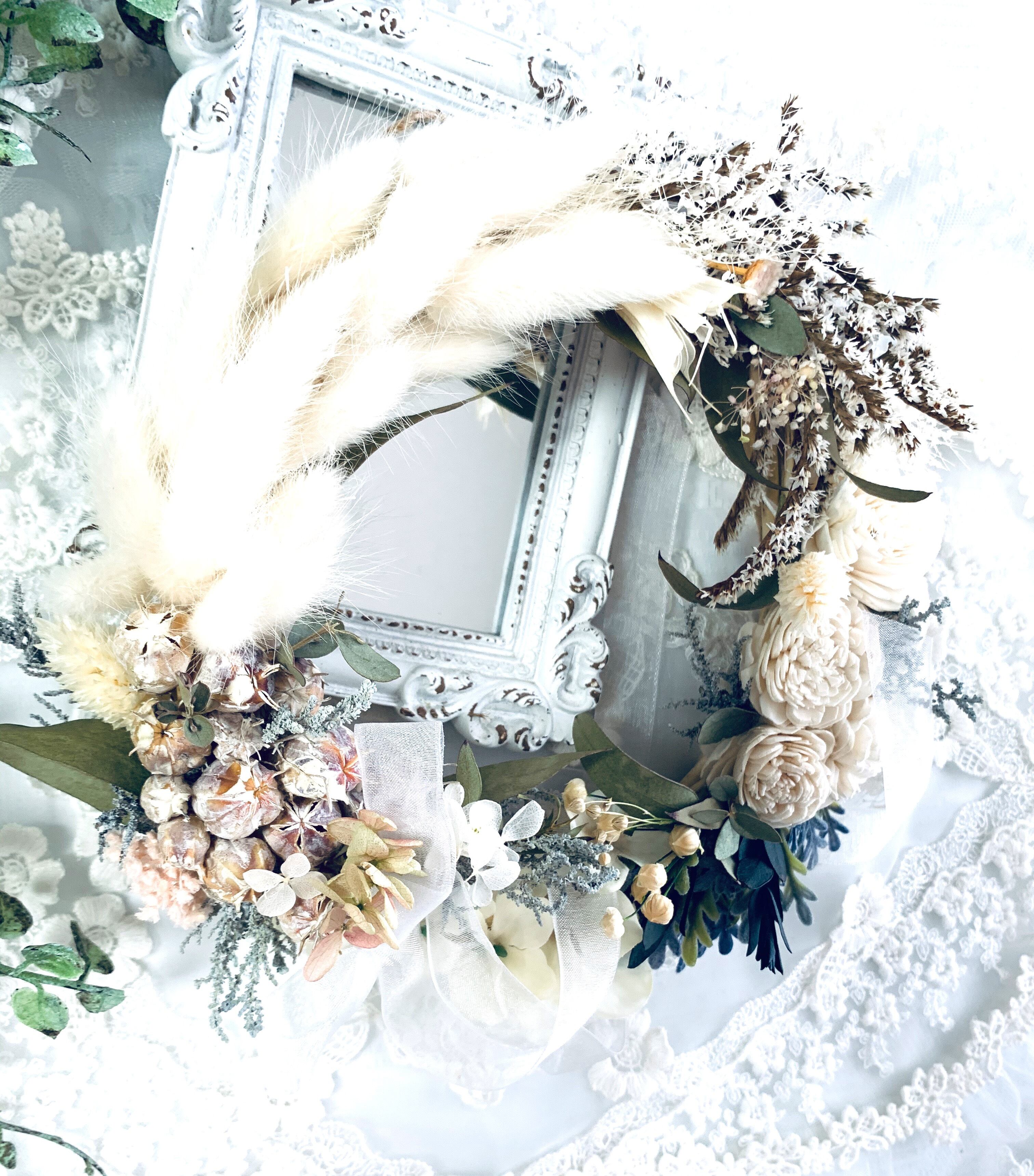 新作*透明感とナチュラルな優しく咲くオフホワイトリース