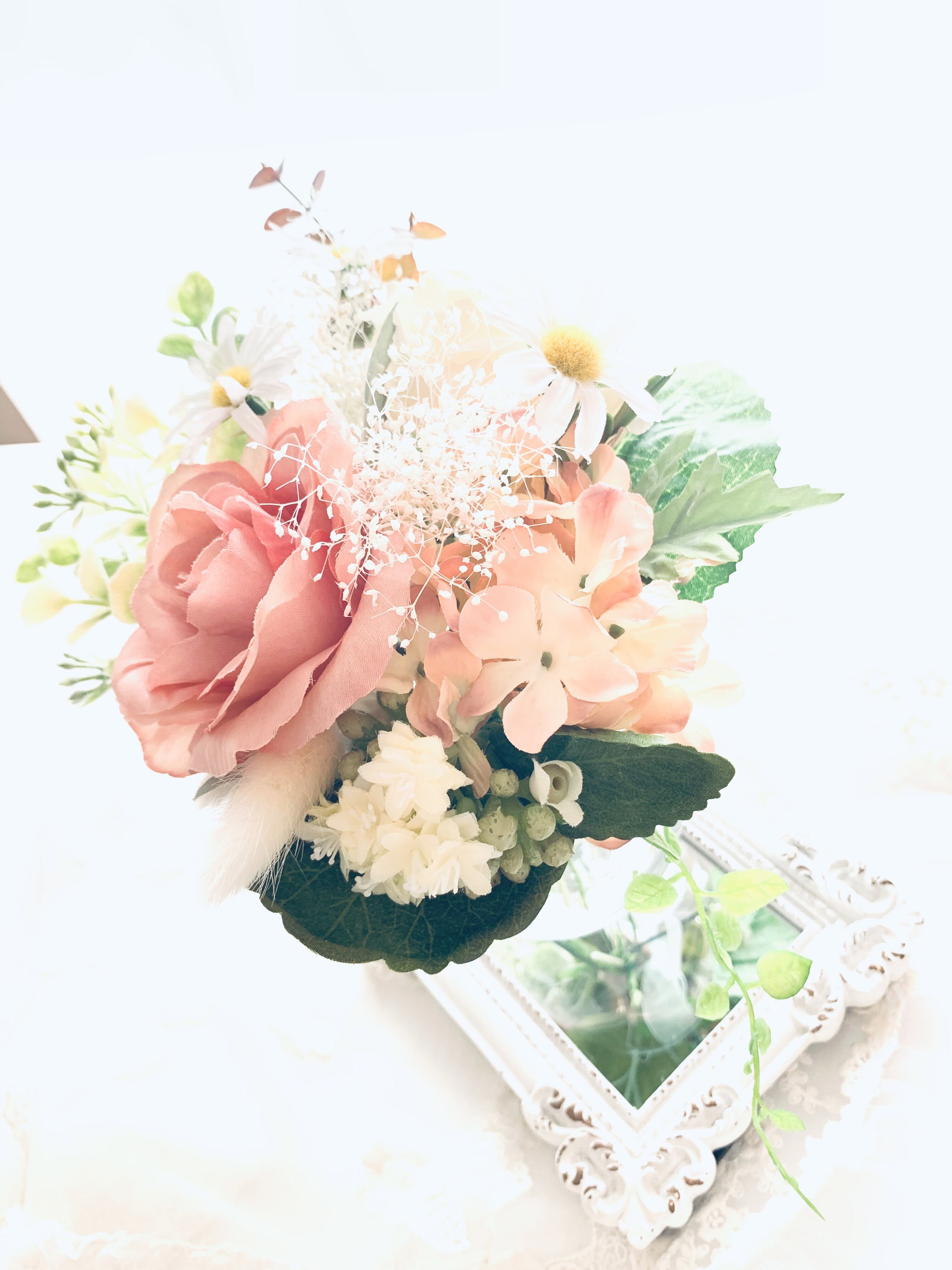 在庫状況の為、細かい花材が季節物のため少し変わる場合もありますがイメージは変わらずにお作り致します。