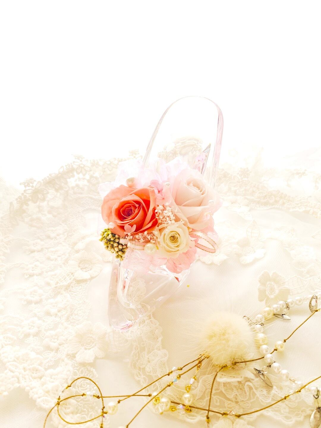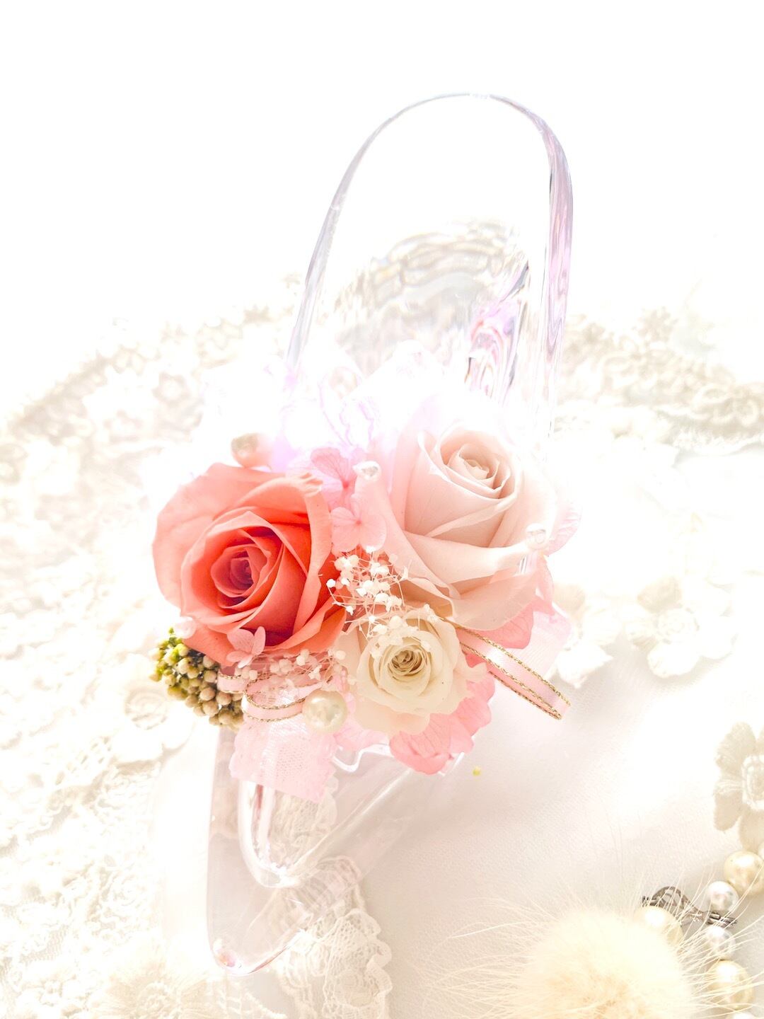 ガラスの靴 夢見るシンデレラ*結婚祝い誕生日に大切な日のフラワーギフト*リングピロー*お色変更可能