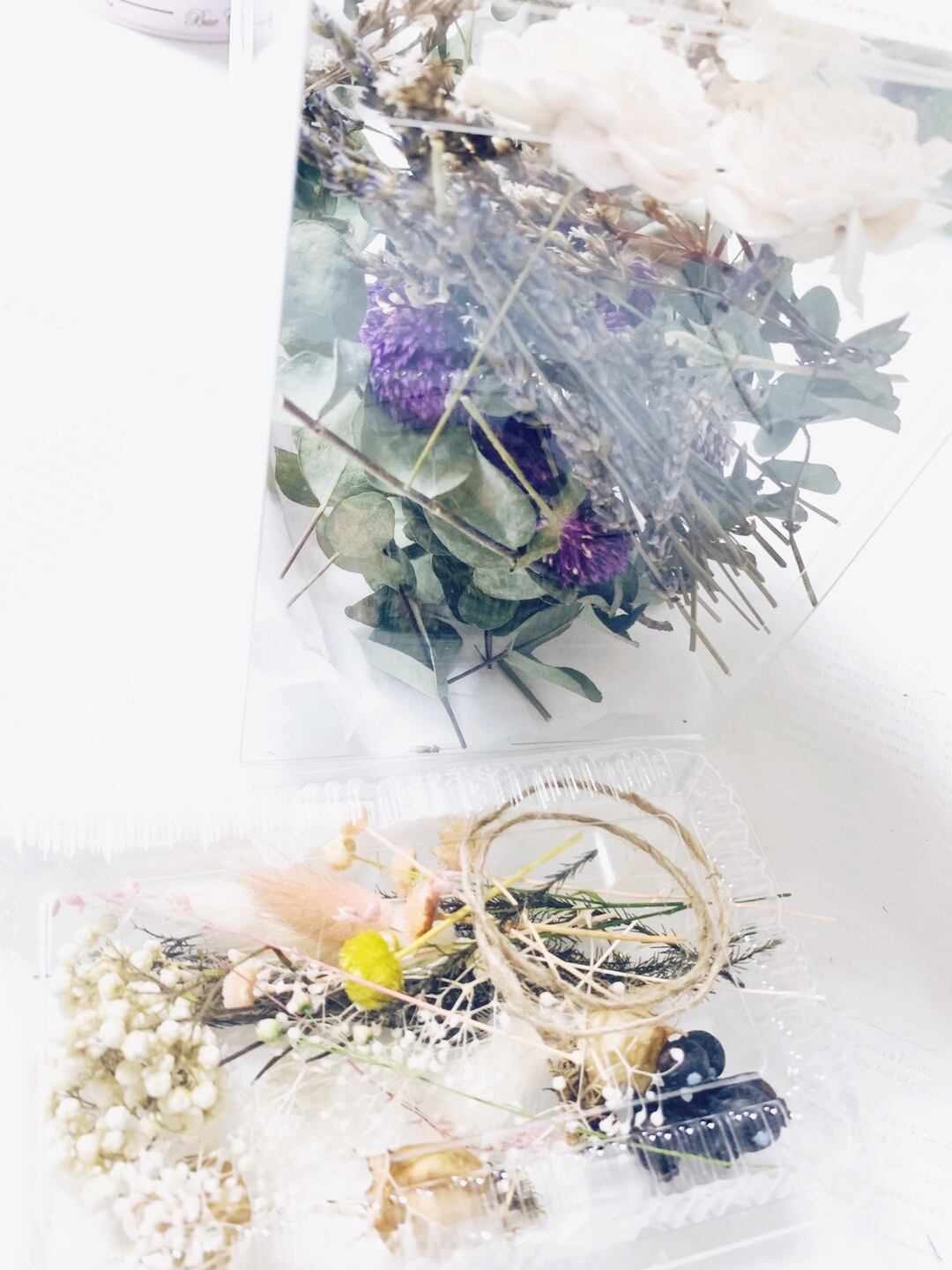 プリザーブドフラワー紫陽花、かすみ草、小花、リンフラワー、ソラフラワー、ストーべ、ラグラス