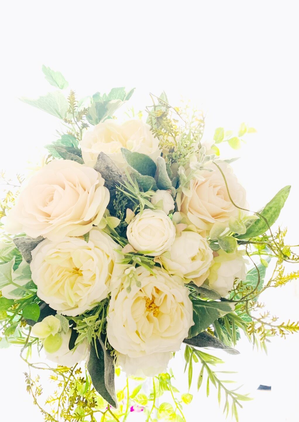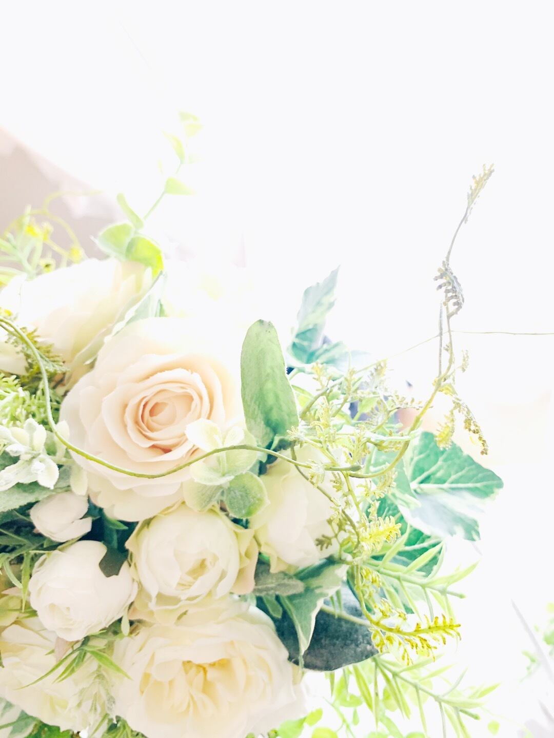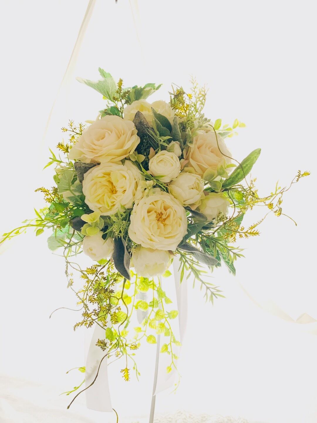 繊細な色味の高級アーティフィシャルフラワーとグリーンで瑞々しいブーケ*:.。..。.:**:.。.。.:*・*:.。. .。.:*・゜:*・゜*:.。..。.:**:.。.