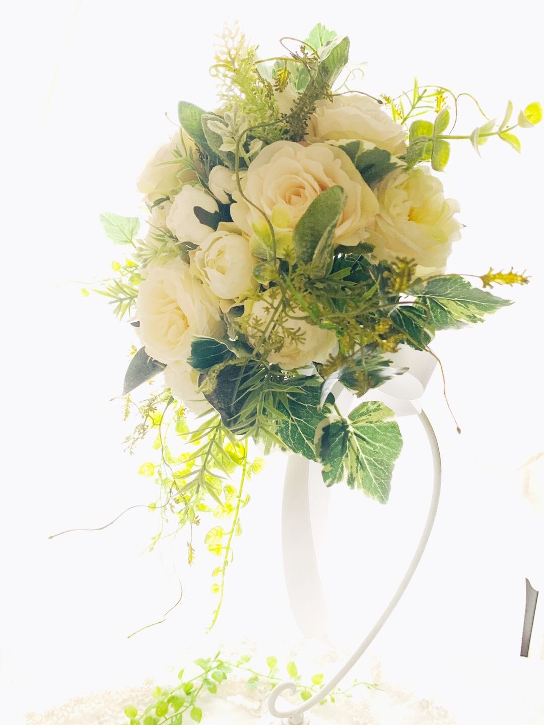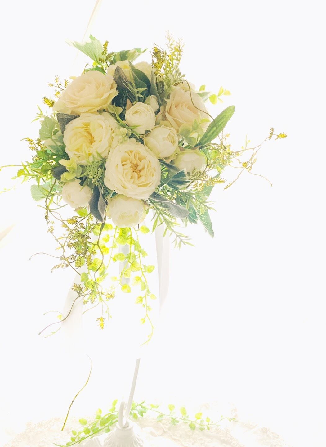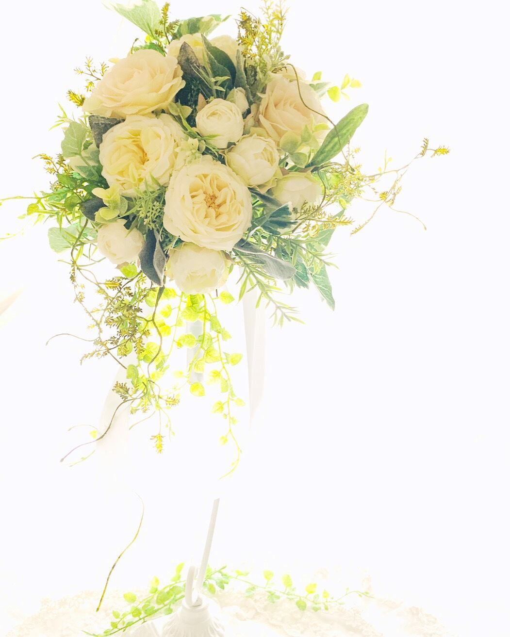 繊細な色味の高級アーティフィシャルフラワーとグリーンで瑞々しいブーケ*:.。..。.:**:.。.。.:*・*:.。. .。.:*・゜:*・゜*:.。..。.:**:.。.