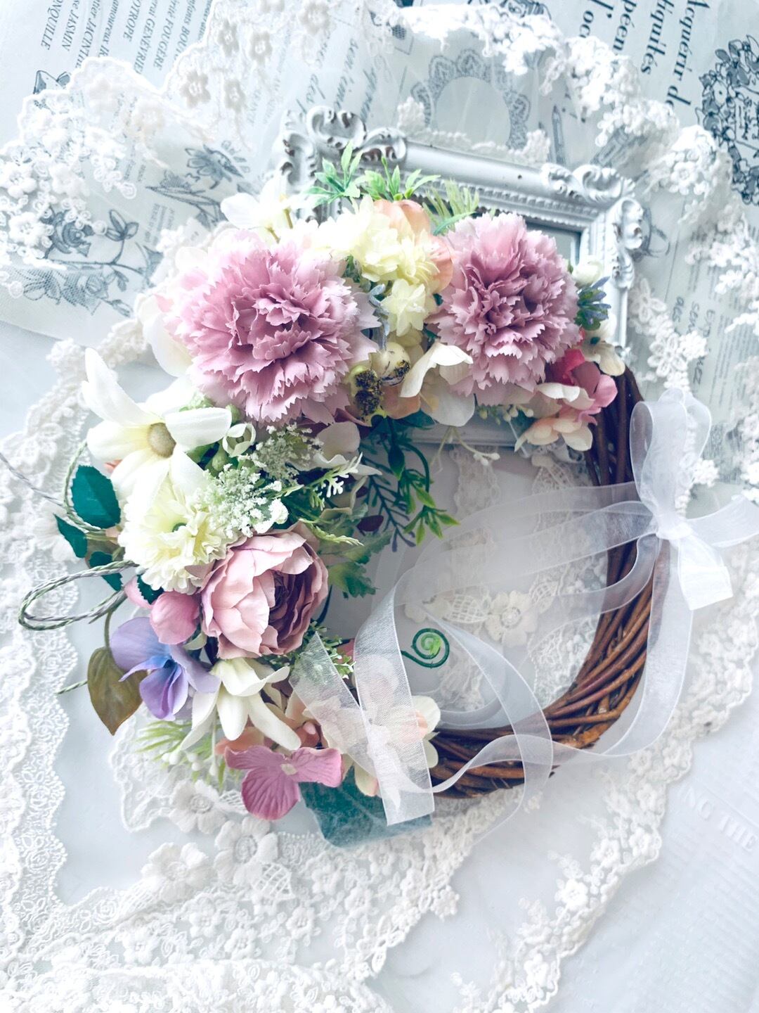 人気のモーヴカラー*ウェディング*ギフト*ウェルカムフラワーに優しく咲くお花達のフラワーリース