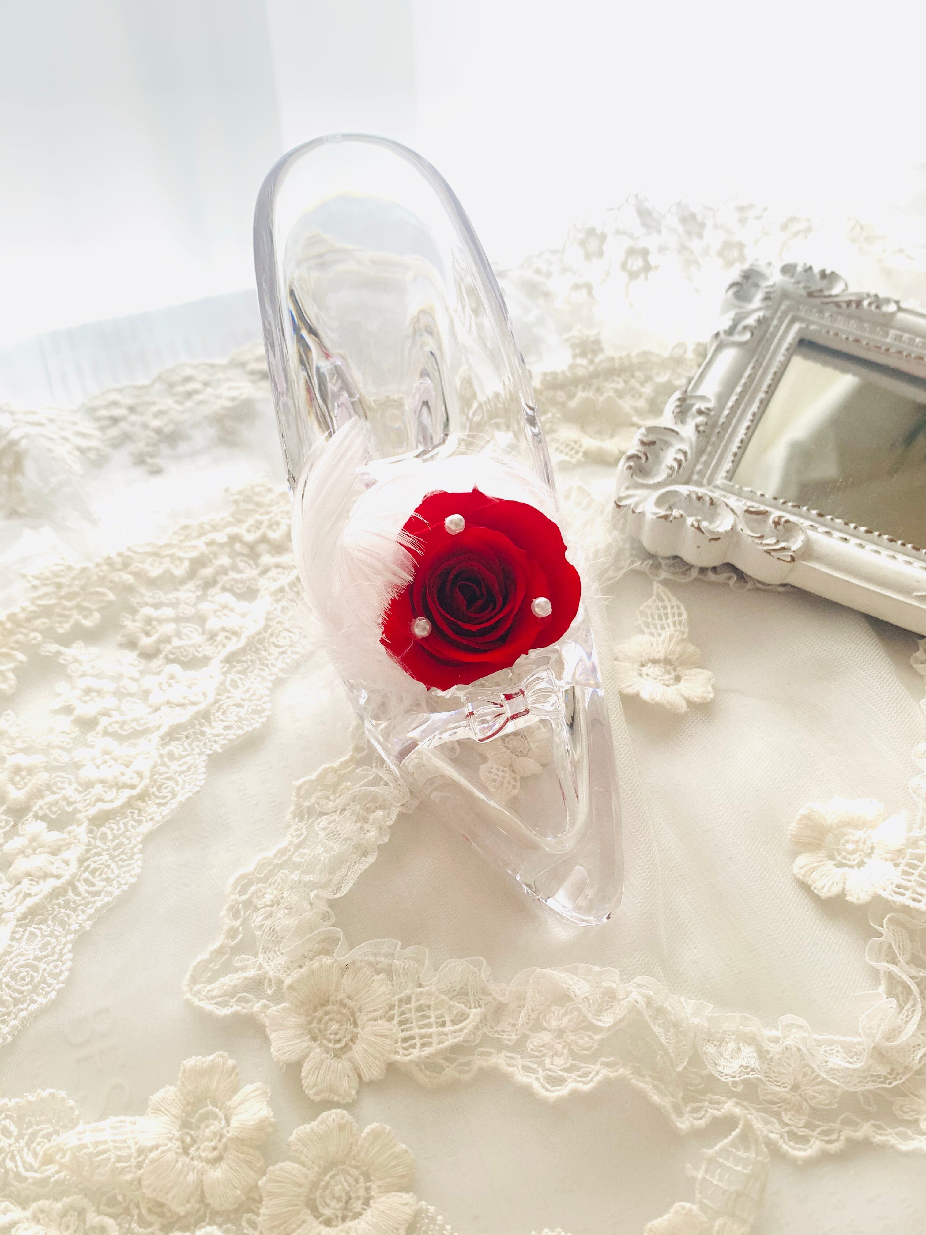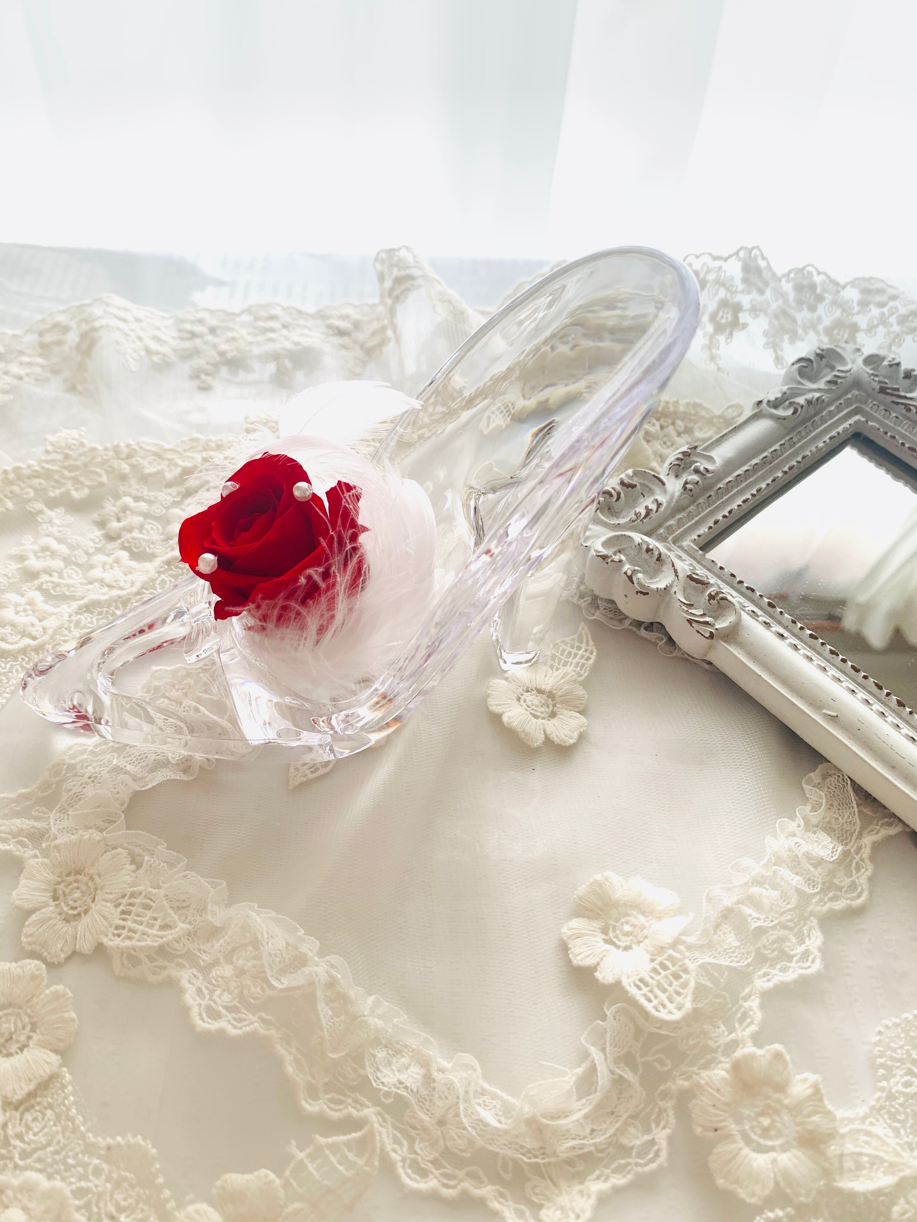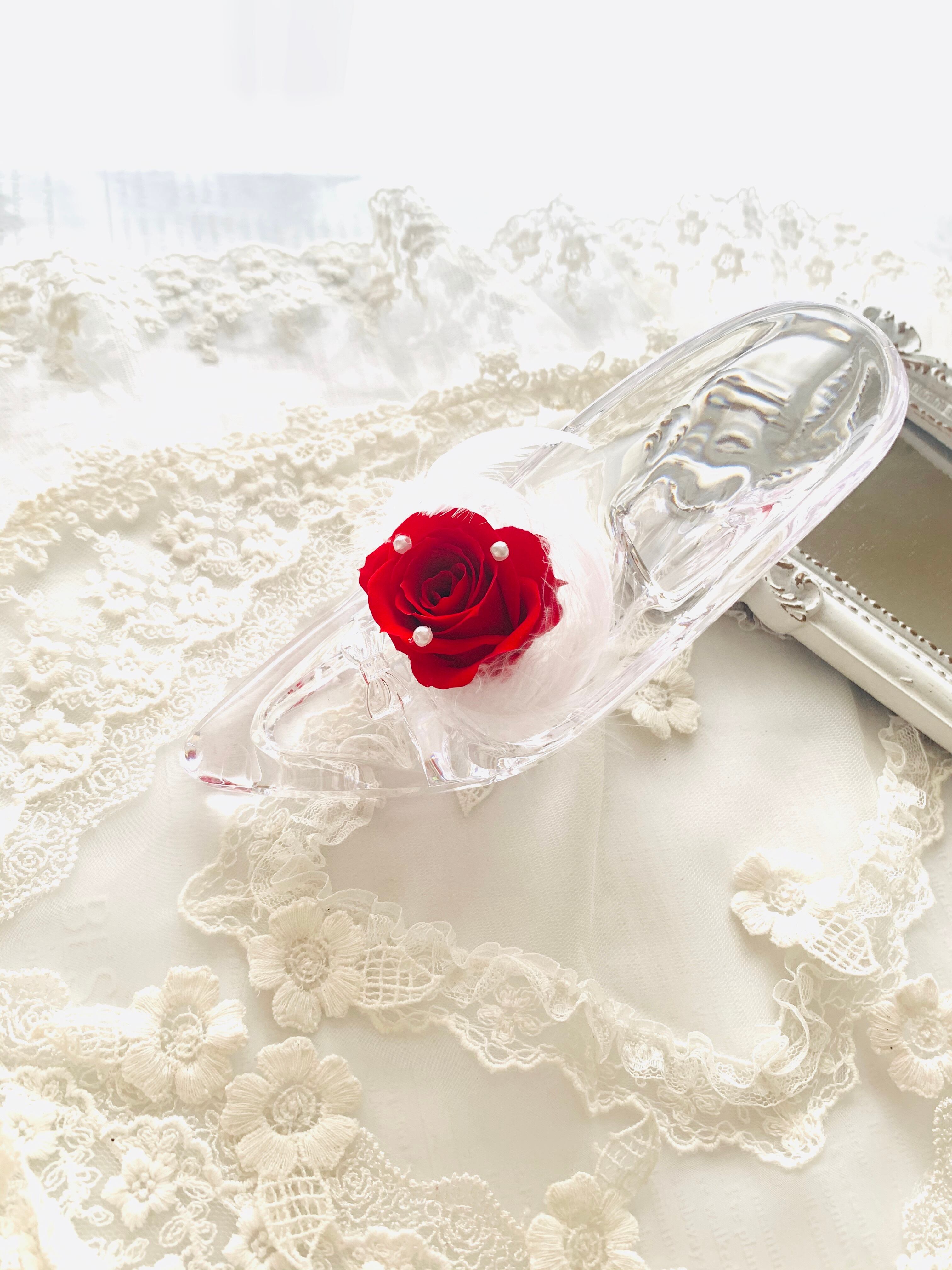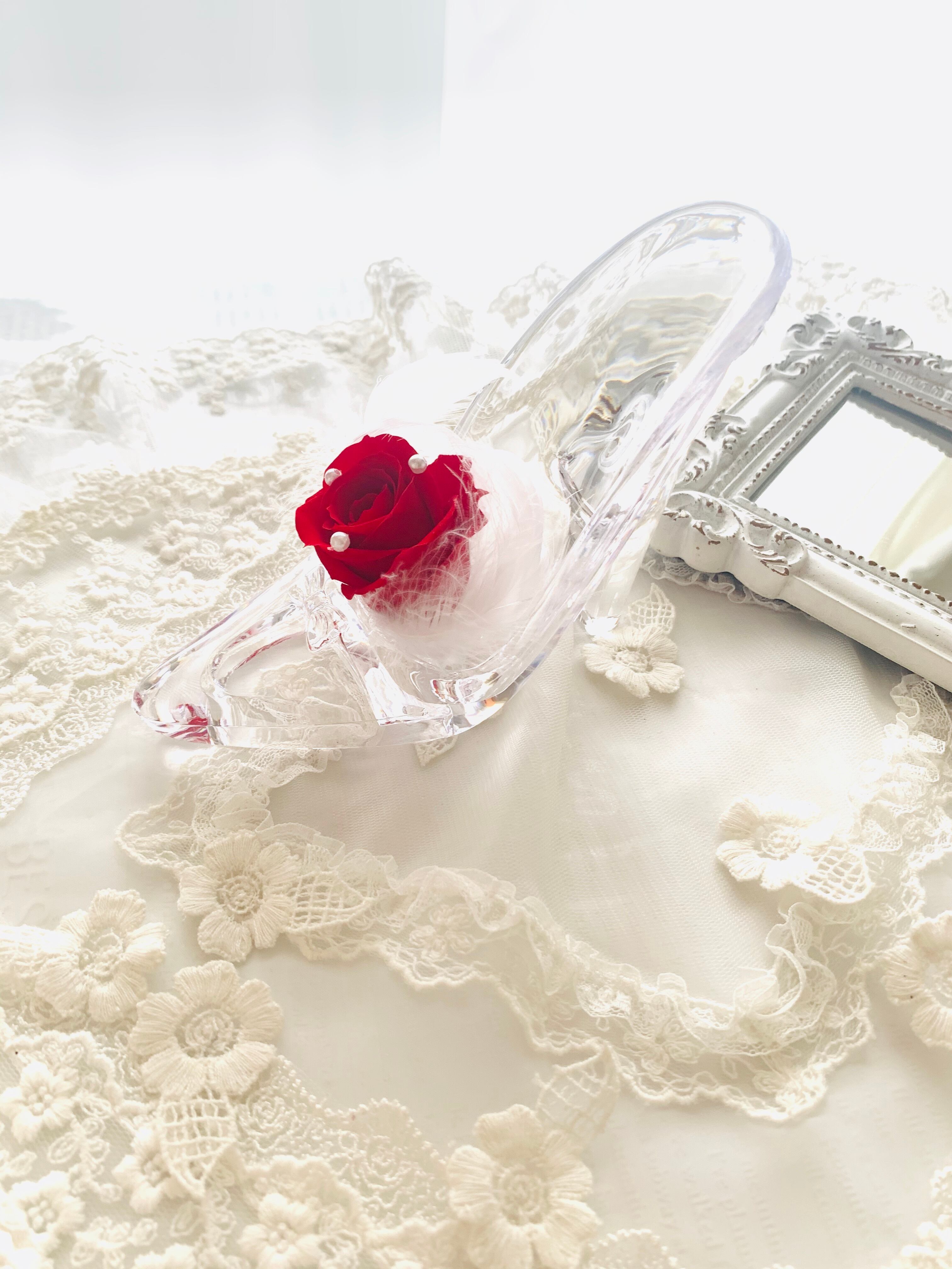 クリスマス*結婚祝い*素敵なフラワーギフトにガラスの靴*お色味変更可能