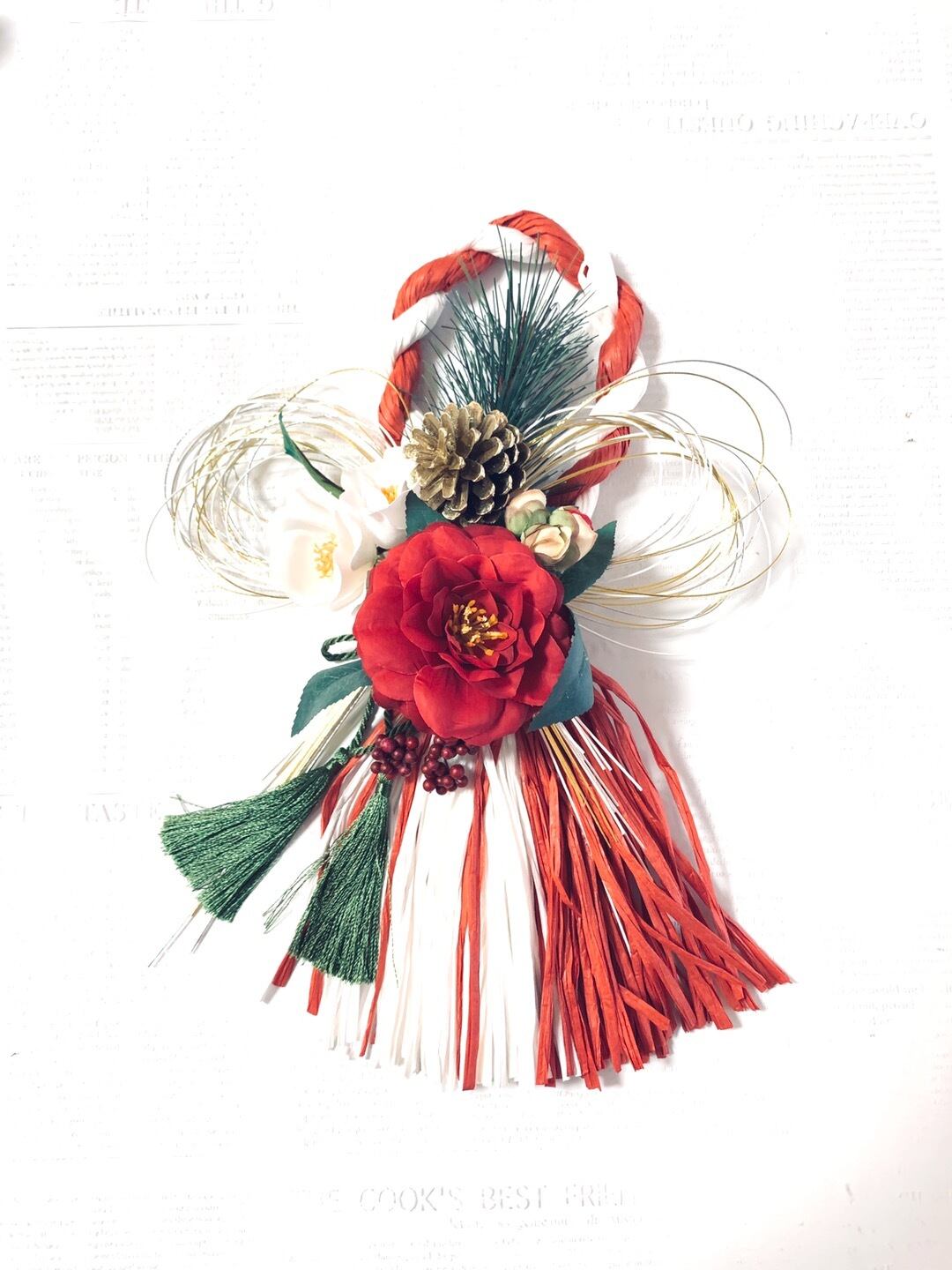 高級アーティフィシャルフラワーを使用した専属デザイナーのオリジナルしめ縄飾り*・゜゚・*:.。..。.:*・ .。.:*・゜゚・*