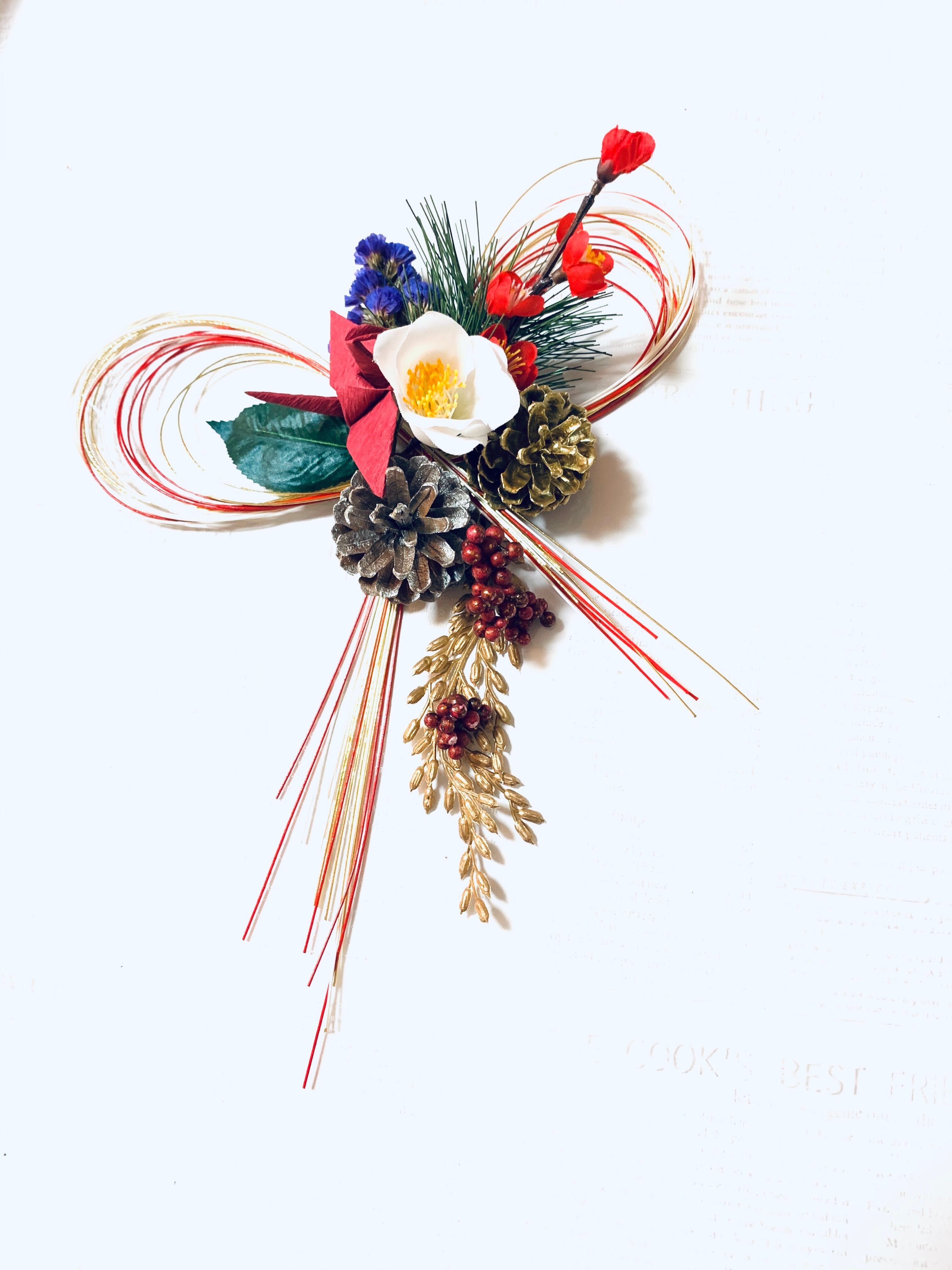 『早割お正月2022』椿と梅の祝い折り鶴の和風お正月飾り