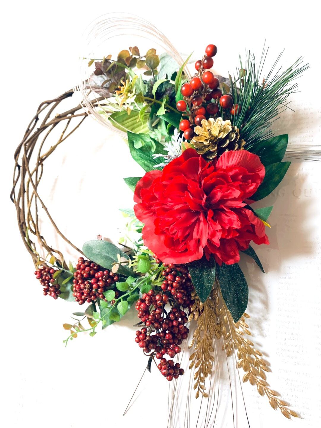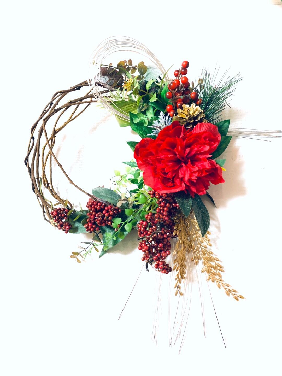 『早割お正月2022』ナチュラルなベースに紅芍薬で祝うしめ飾り