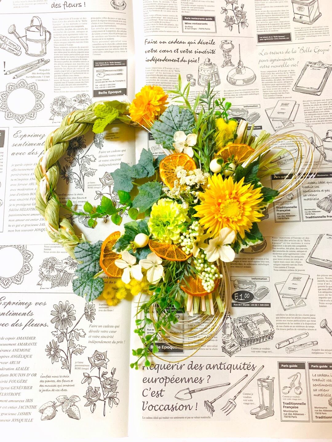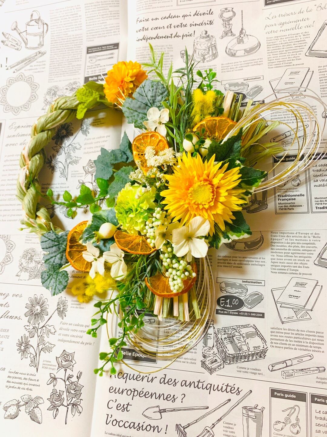高級アーティフィシャルフラワーとフレッシュなお色のドライオレンジを使用した専属デザイナーのオリジナルしめ縄飾り*・゜゜・*:.。..。.:*・ .。.:*・゜゜・*