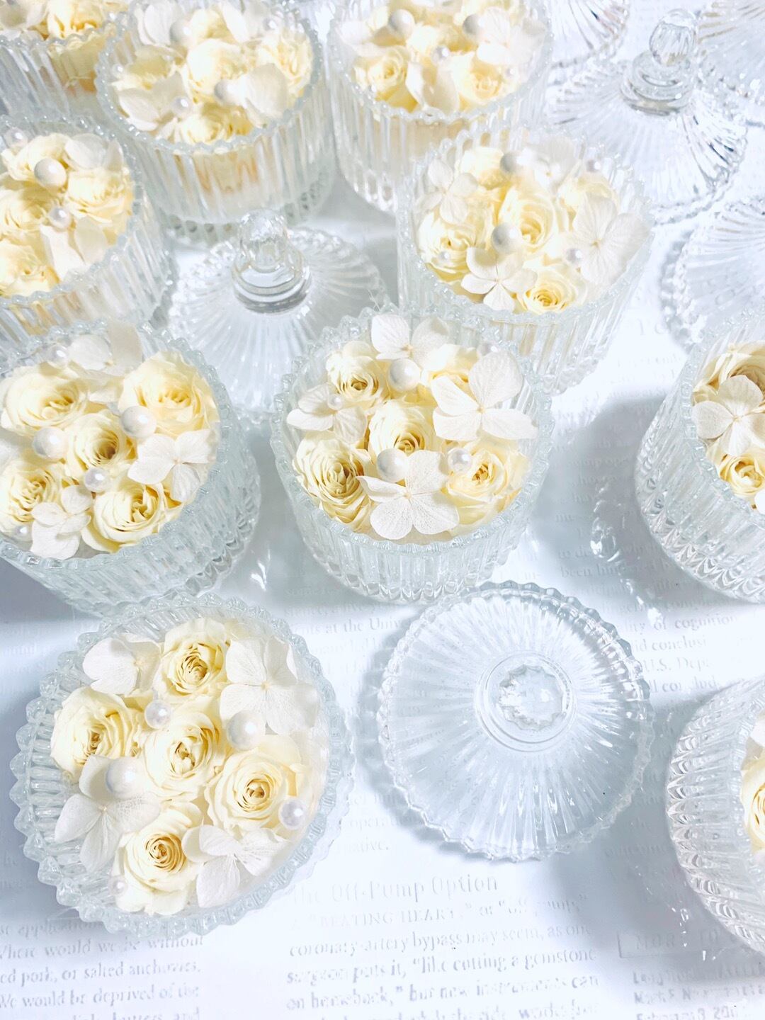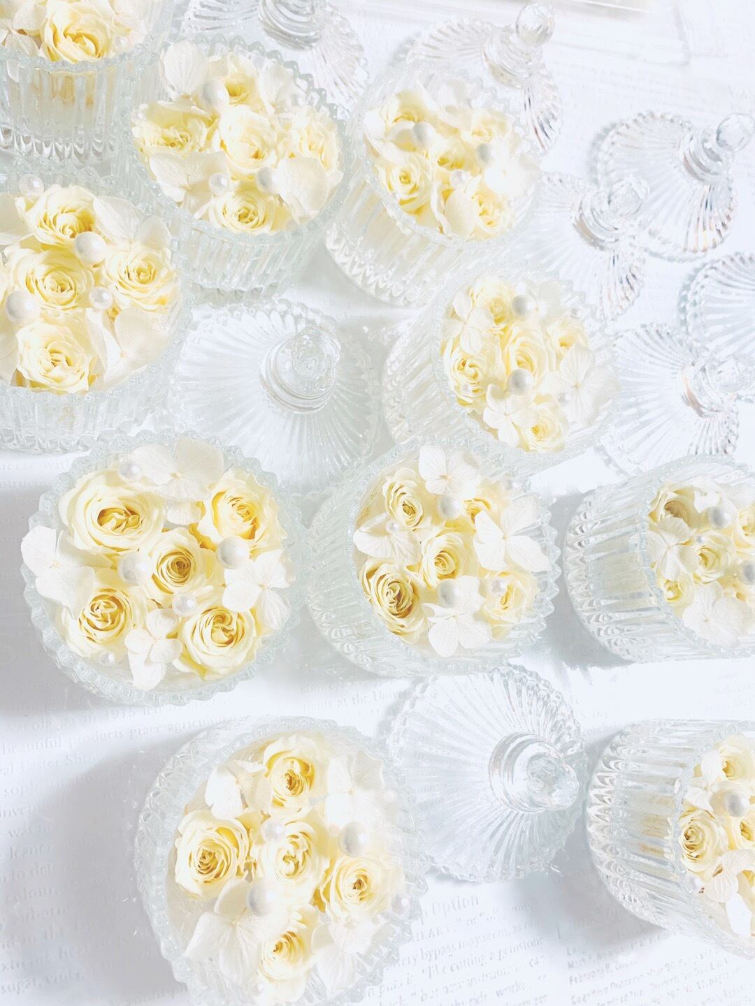 特別価格*白い季節に贈るプリザーブドローズのガラスのキャニスター*リングピロー可