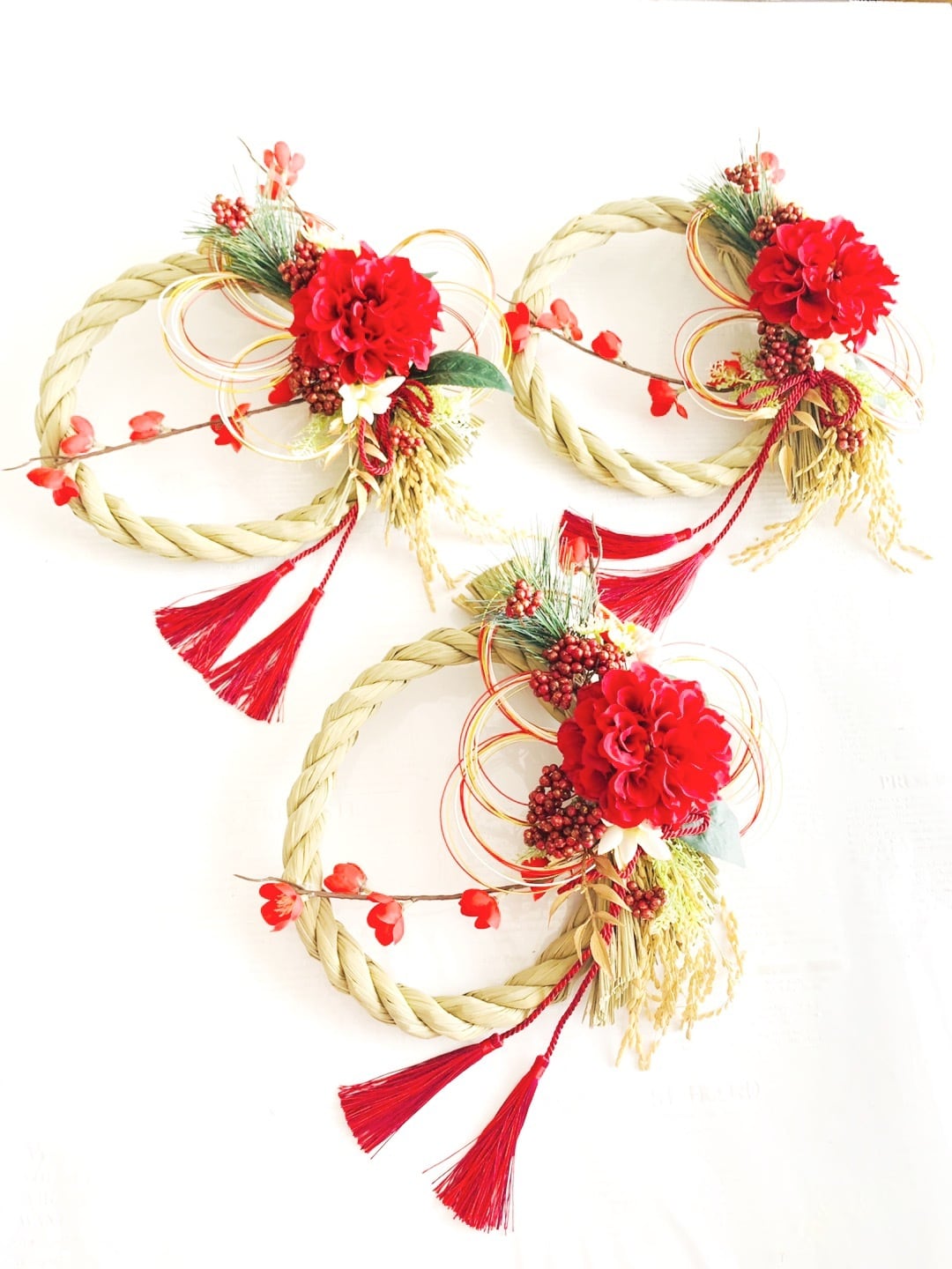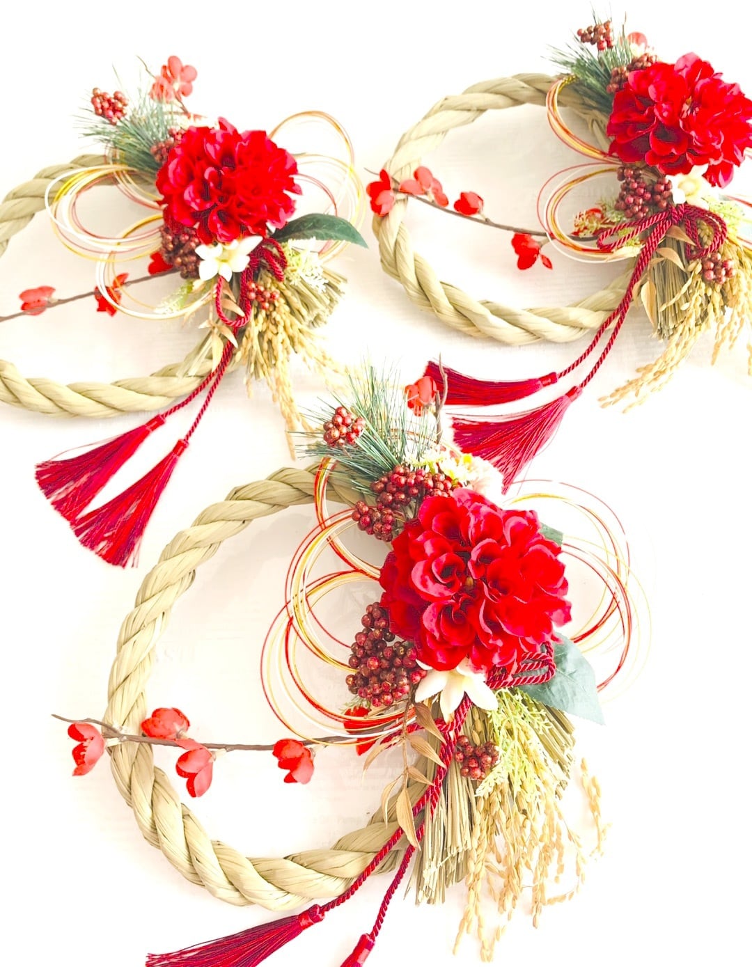 高級アーティフィシャルフラワーを使用したオリジナル専属デザイナーのしめ縄飾りで年神様という新年の神様をお迎えしましょう*・゜゚・*:.。..。.:*・ .。.:*・゜゚・*