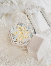 結婚式*フラワーギフト記念日*エンゲージカバーセレモニー*リングピロー*シャンパンホワイトプリザーブドフラワー