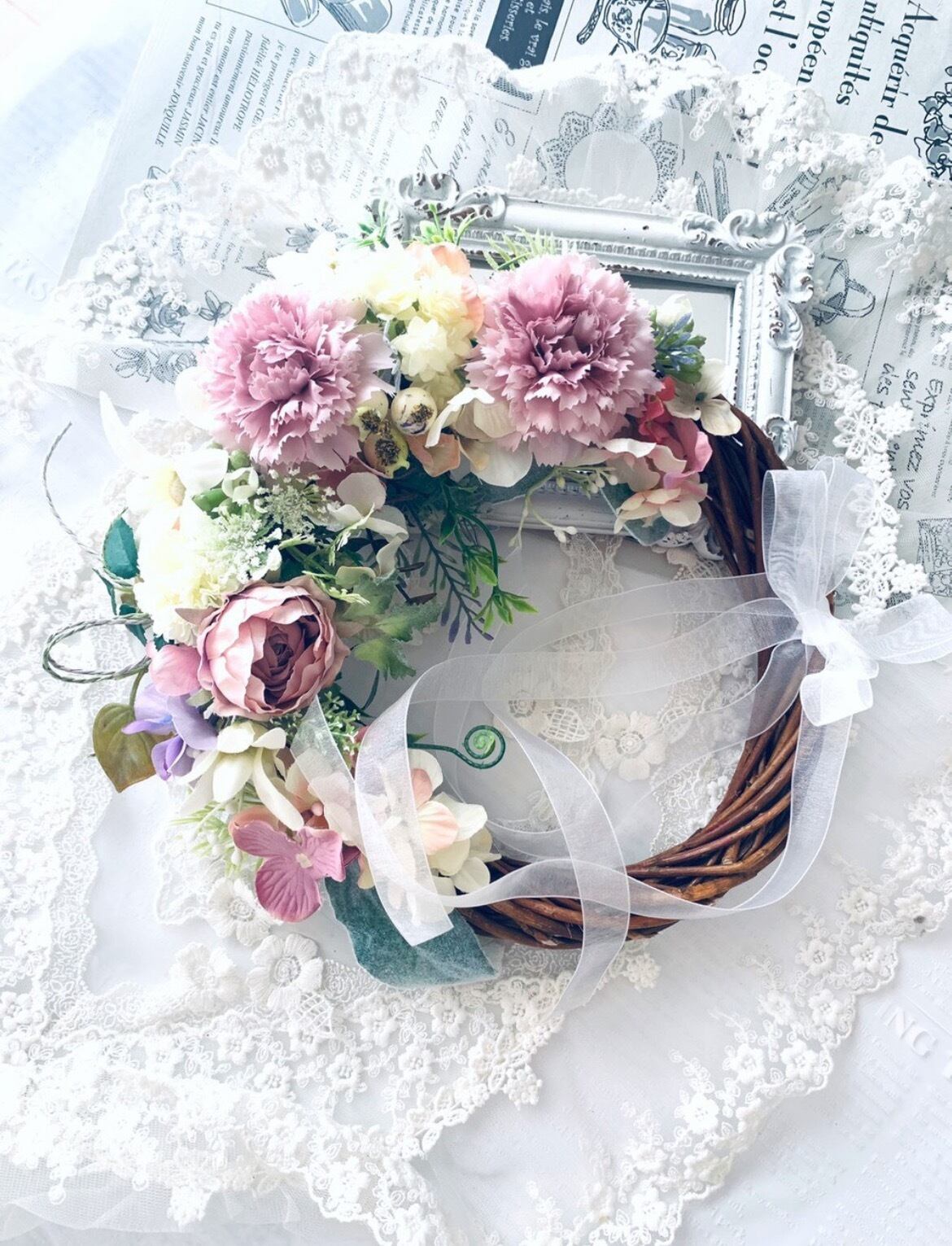 お家で癒しの時間を過ごす手作りキット*優しいモーヴピンクのフラワーリース