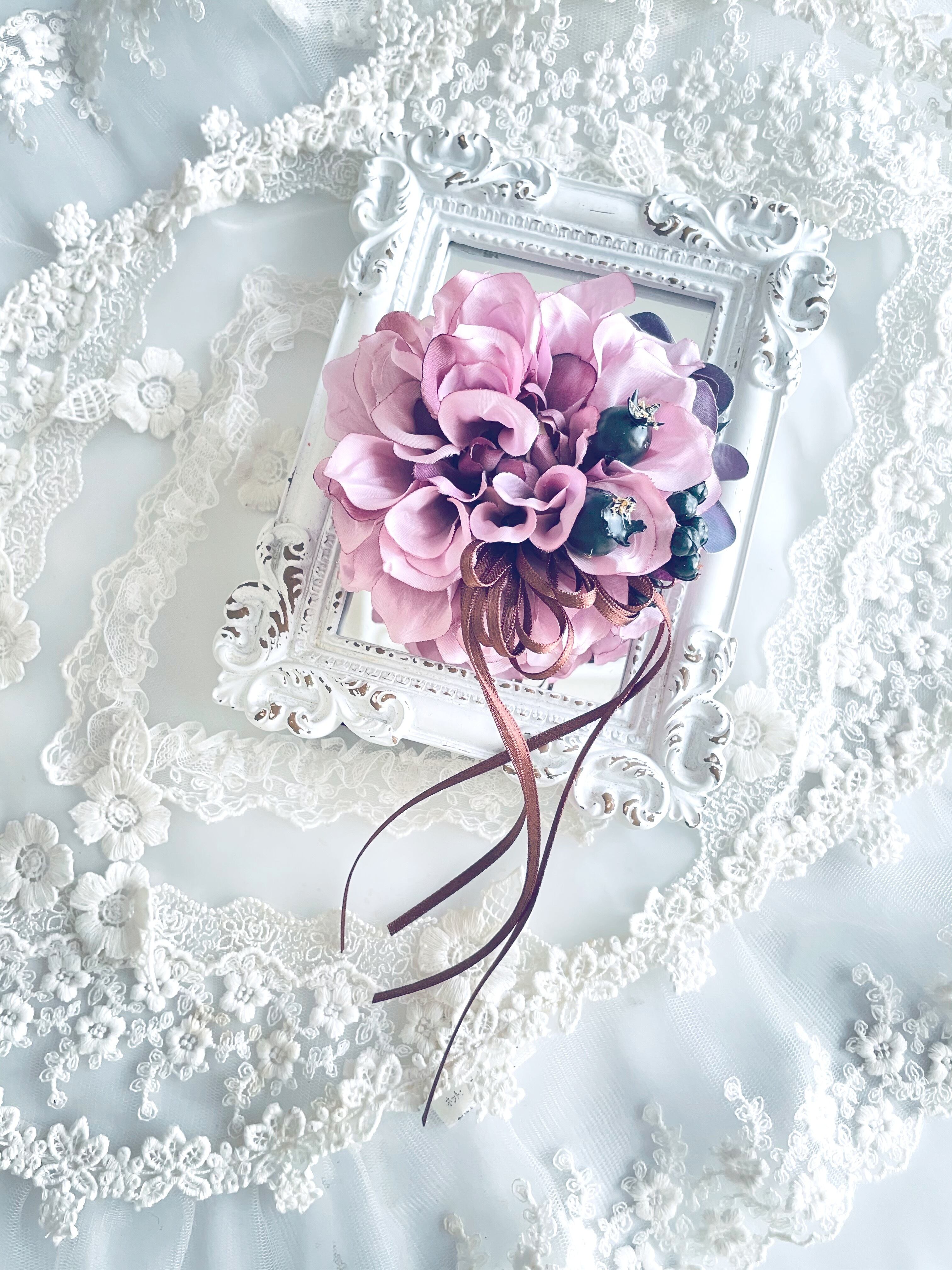 繊細なアーティフィシャルフラワーにリボンを添えて。