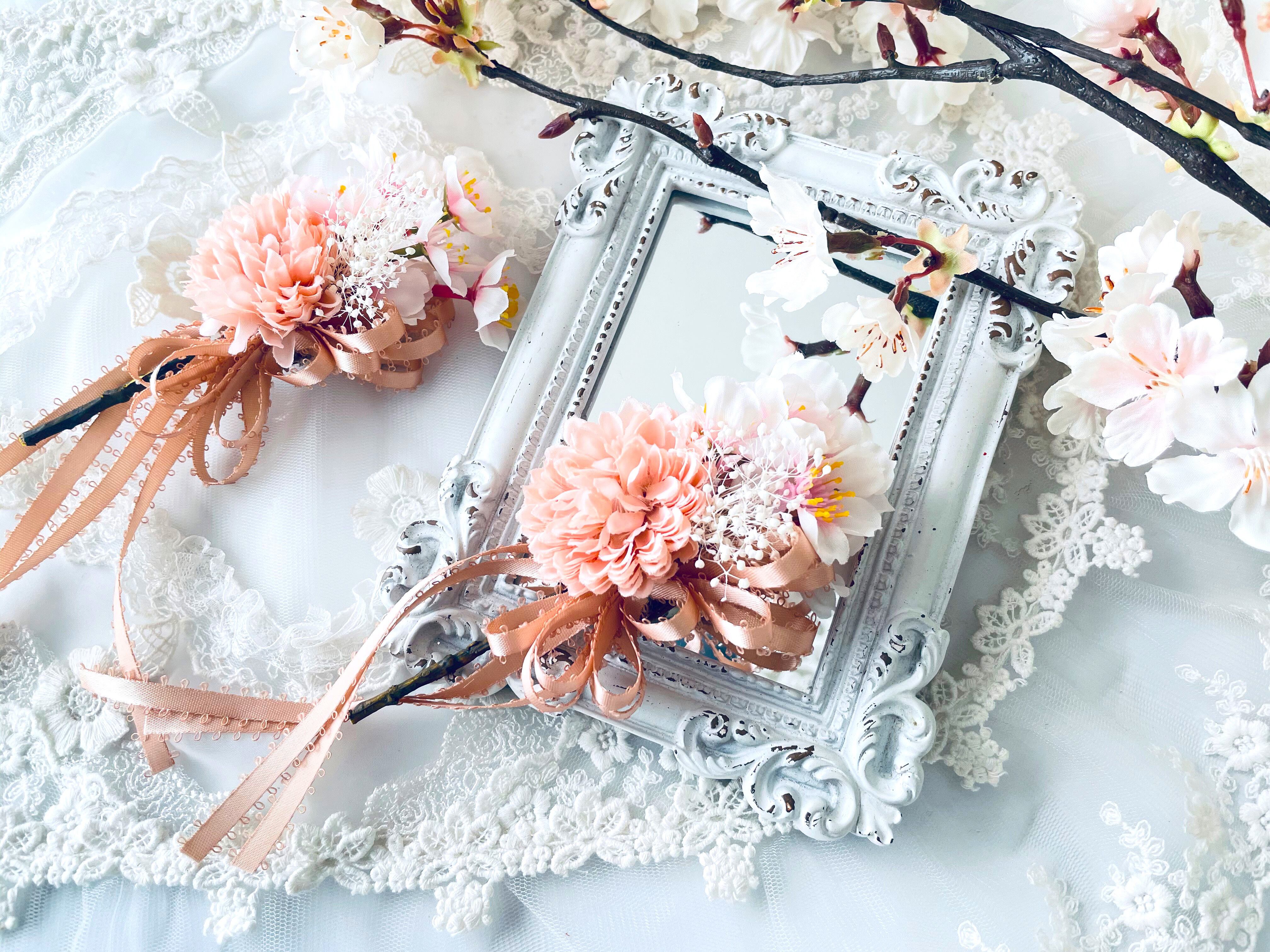 繊細なアーティフィシャルフラワーにリボンを添えて。