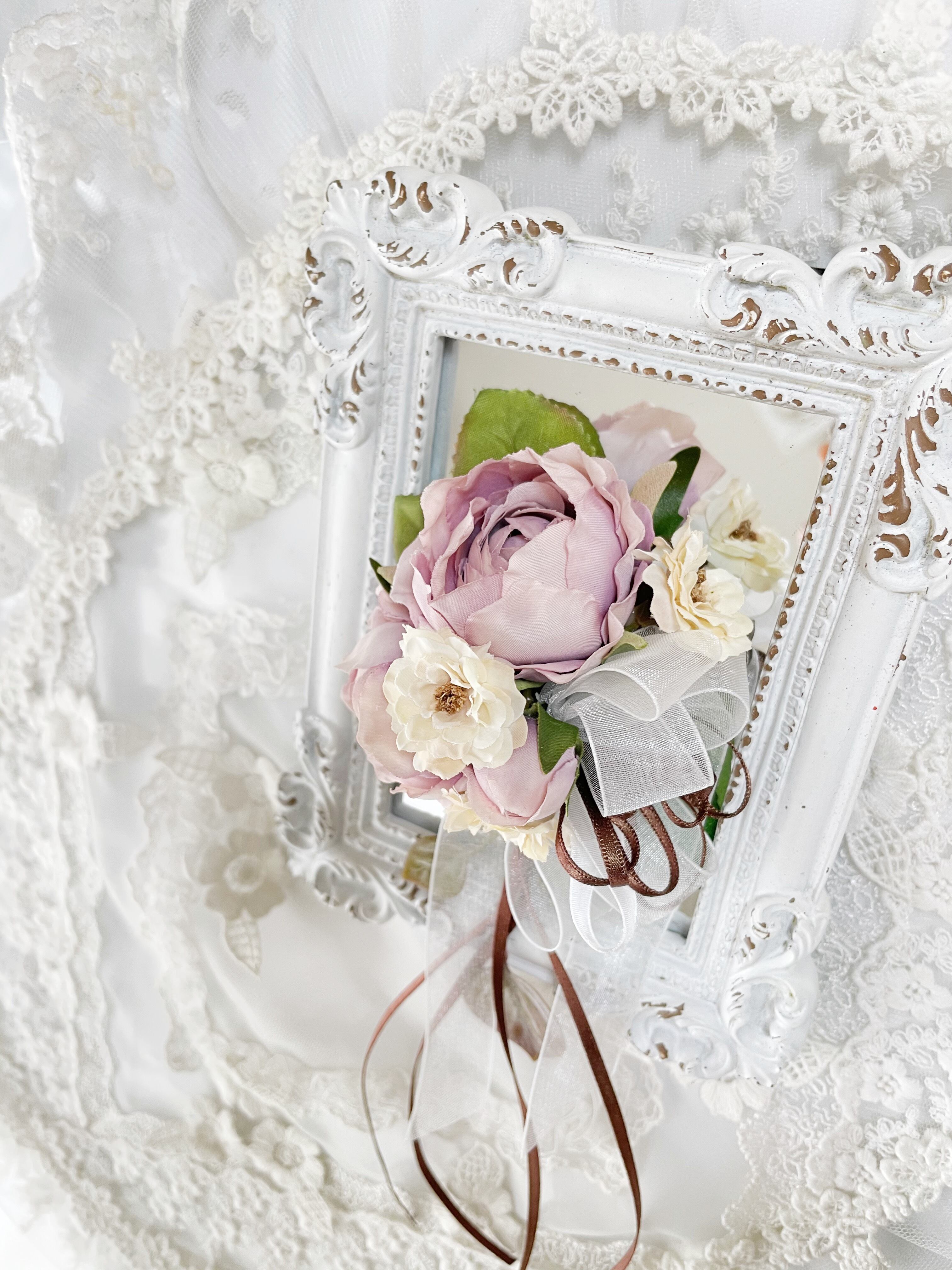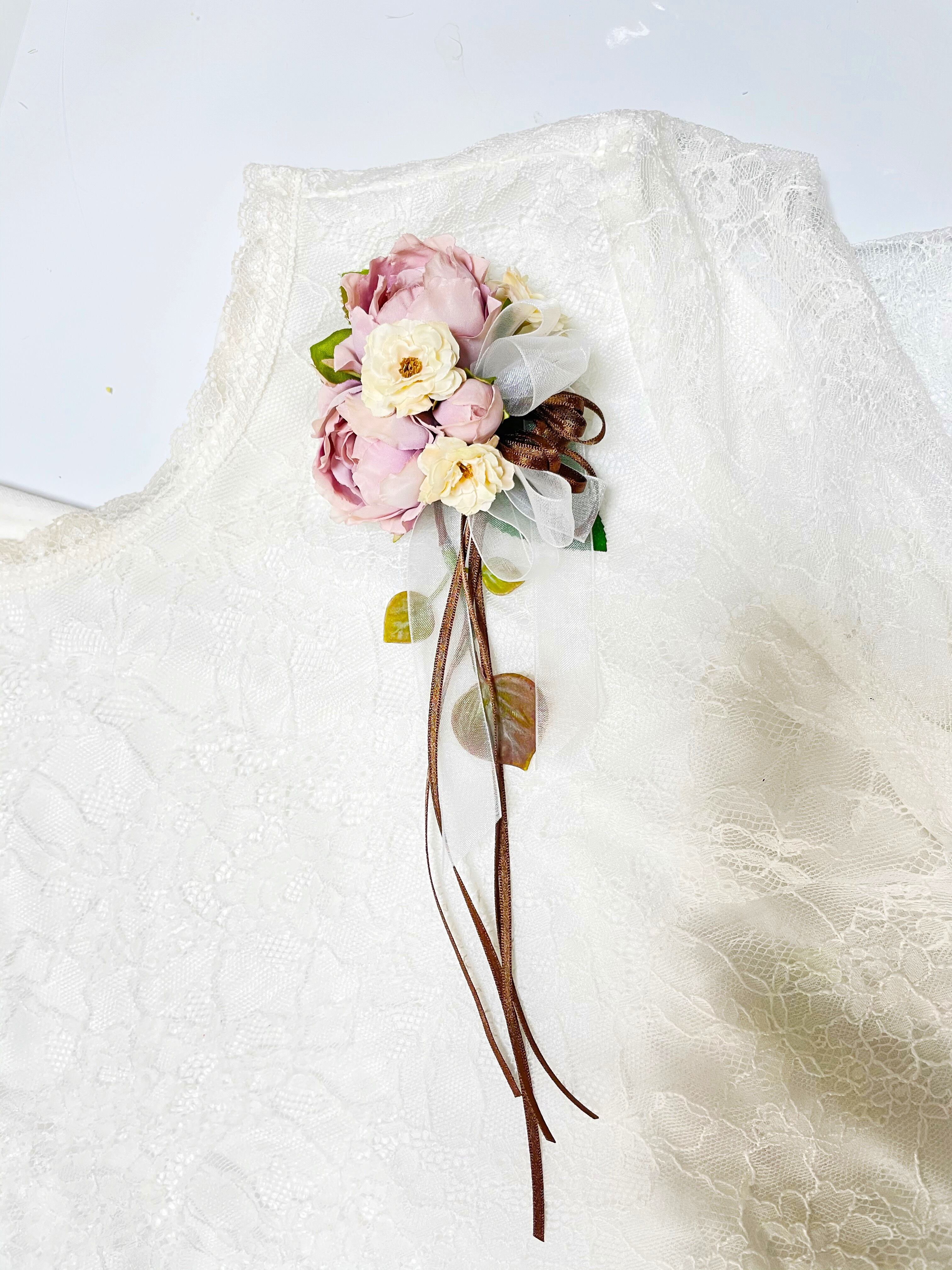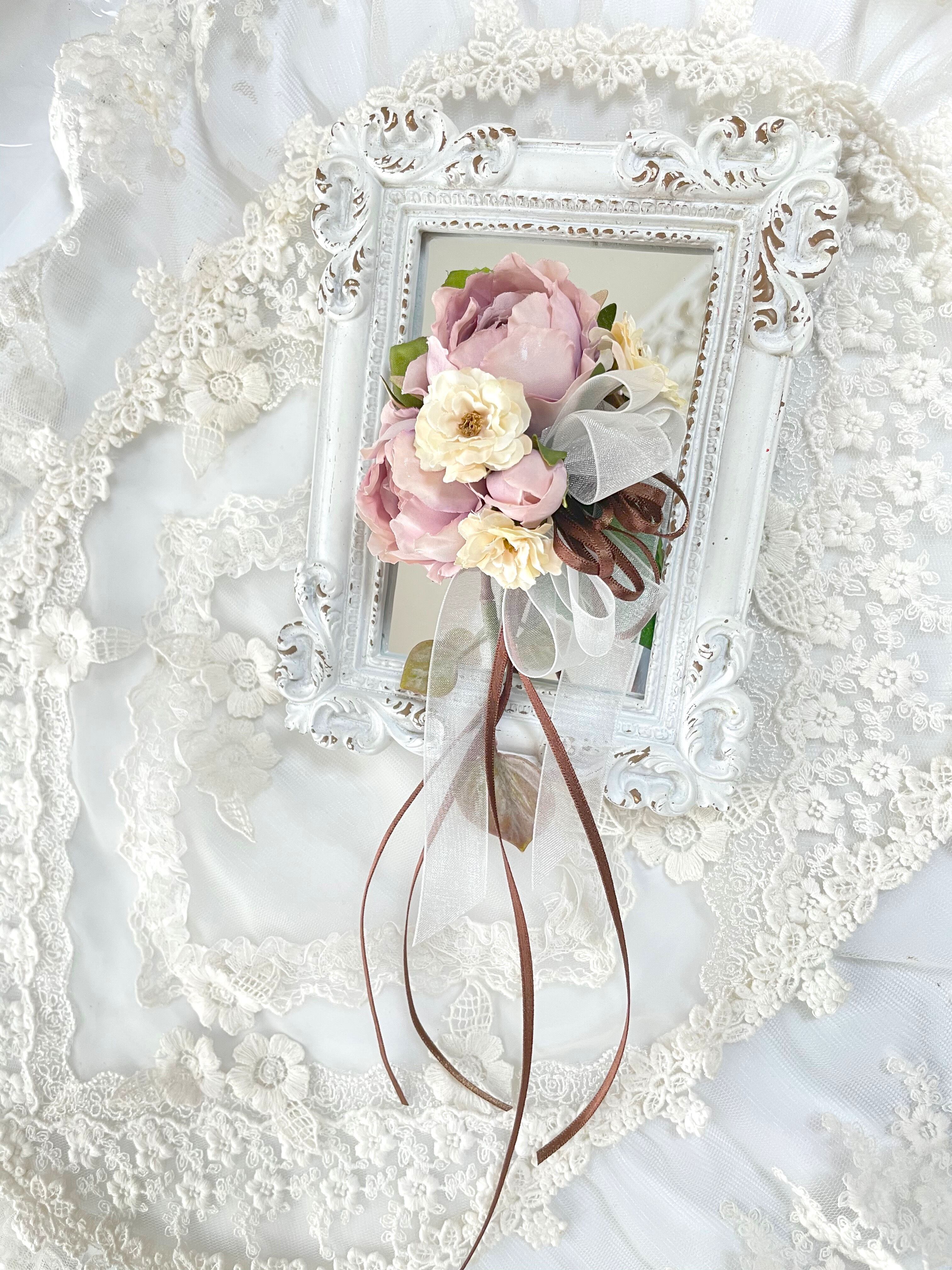 春の装いに上品な薔薇のアーティフィシャルフラワーコサージュ