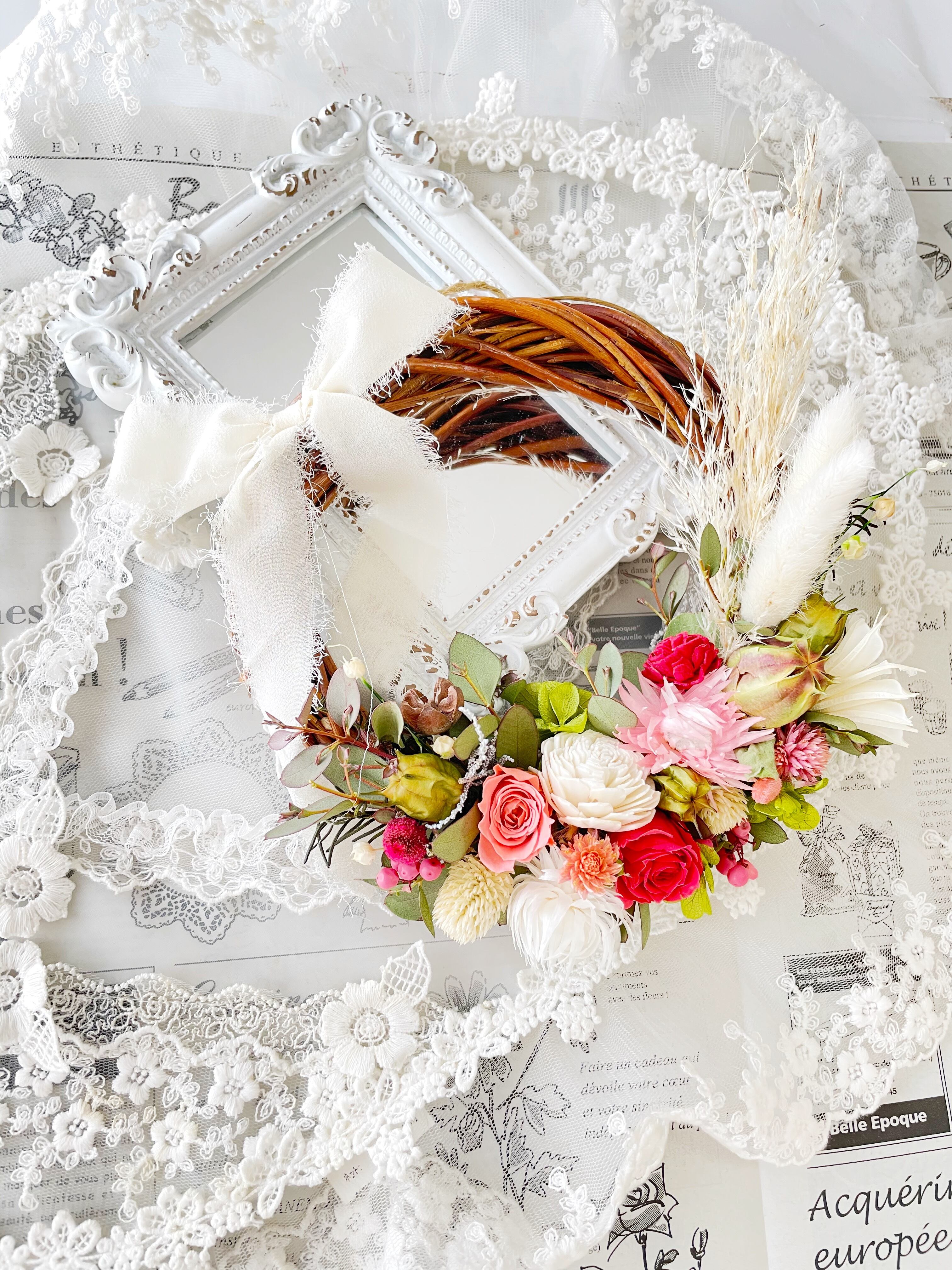 早割母の日*お家時間を楽しむ手作りキット*可愛いベリーカラープリザーブドフラワー癒しのナチュラルフラワーリース