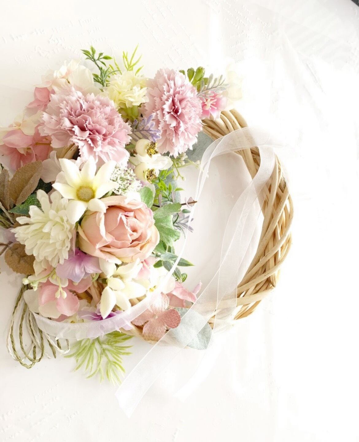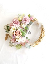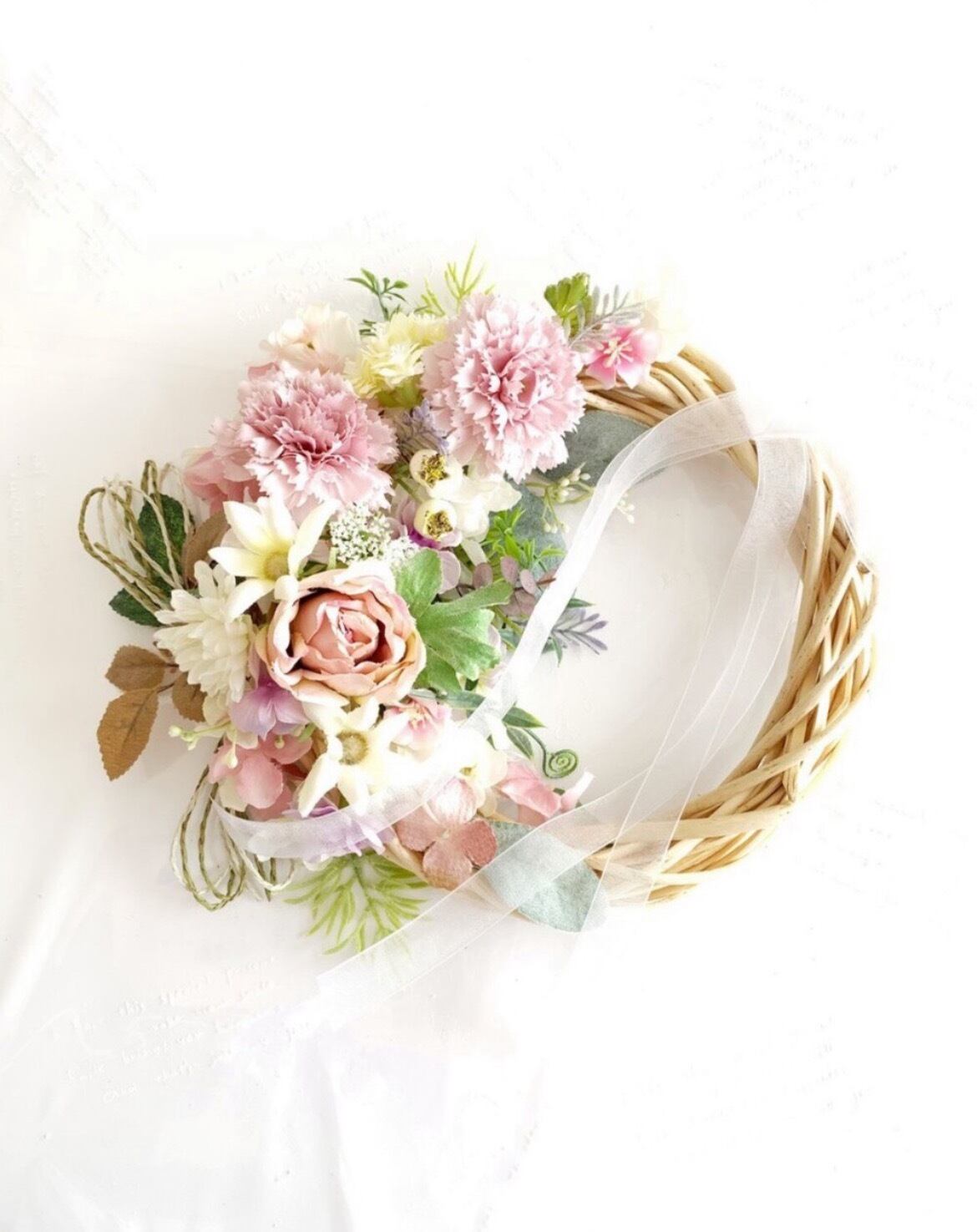 早割*母の日2021*ふんわり優しいニュアンスカラーカーネーションと薔薇のアーティフィシャルフラワーリース