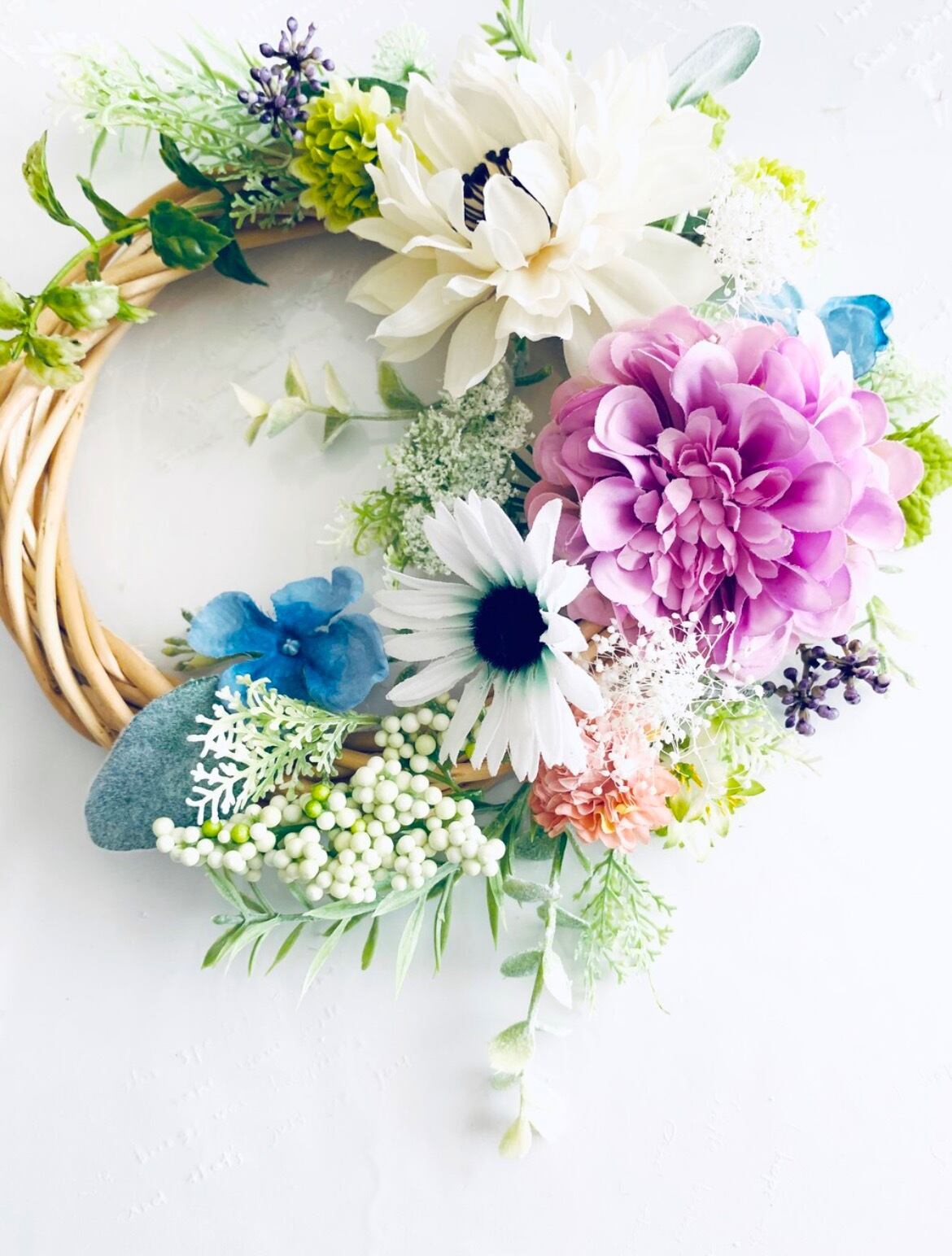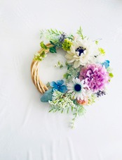 早割*母の日リース*美しいダリアと涼やかなホワイトアネモネのアーティフィシャルフラワーリース