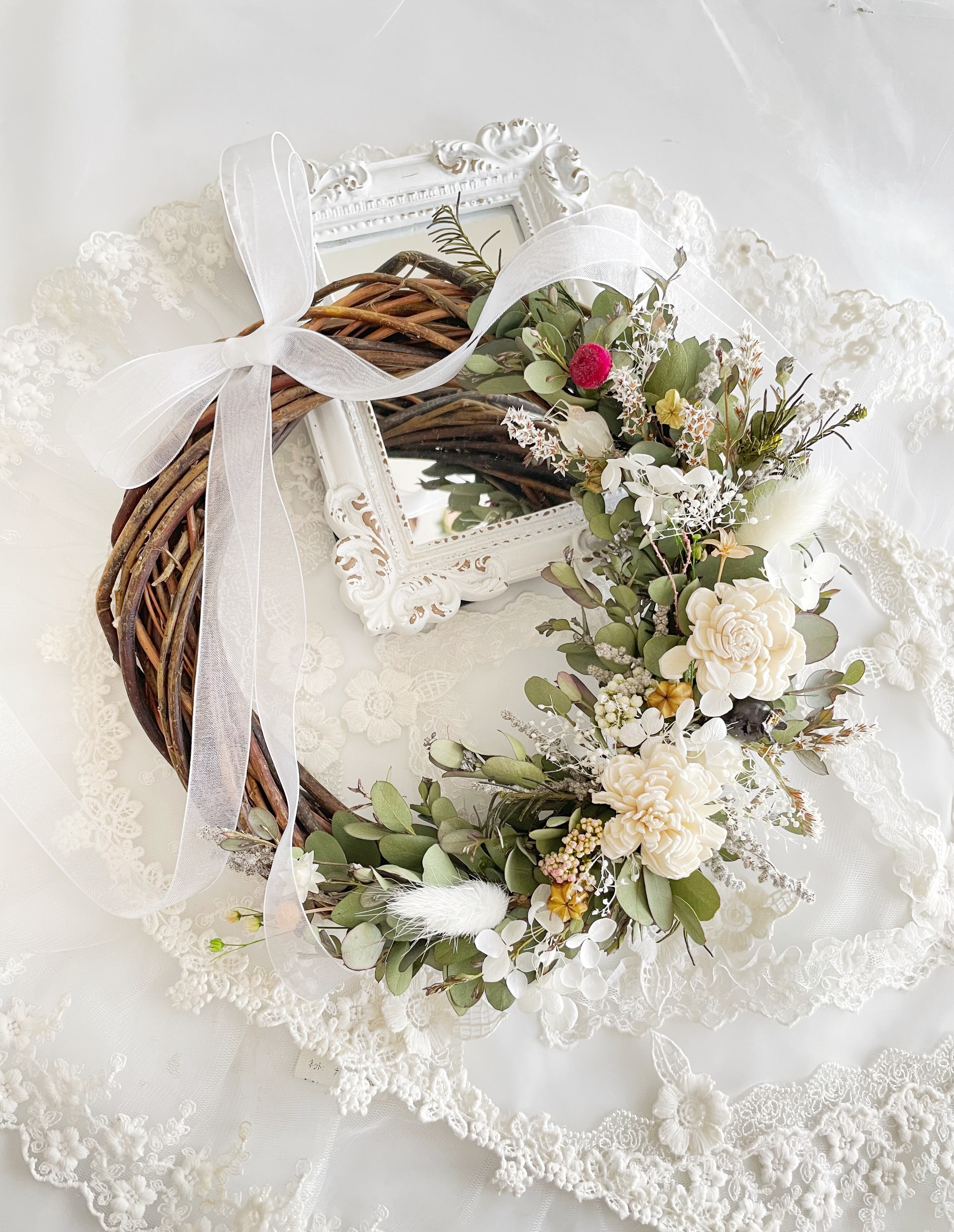 ナチュラルな優しい色合いのお部屋に馴染むドライフラワーリース
