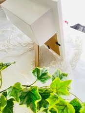 明るく繊細な色味のプリザーブドフラワー、紫陽花、プリザーブドローズでお花畑のようなアレンジフォトフレームです。
