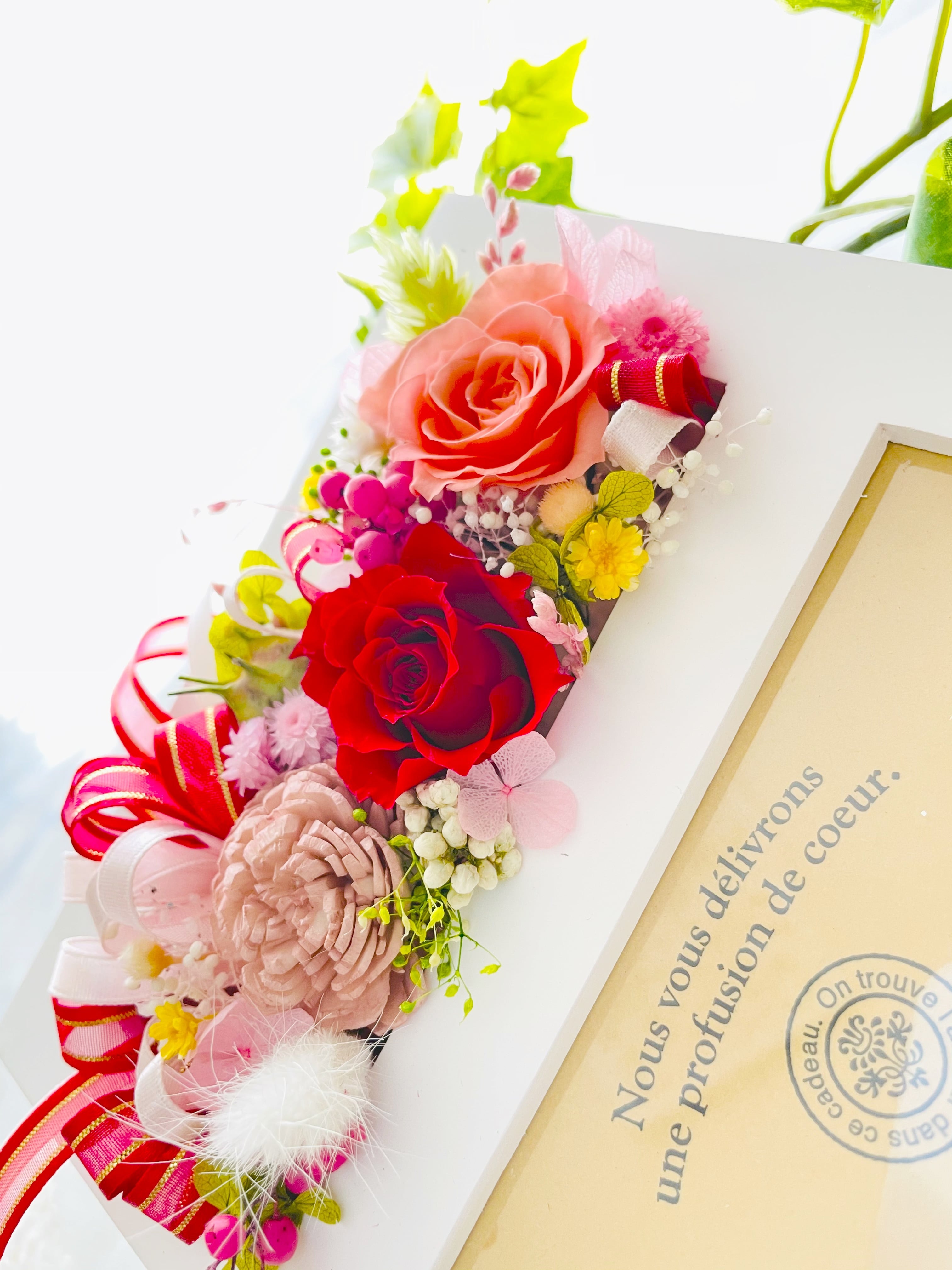 フラワーギフト*想い出に優しく咲くプリザーブドフラワーフォトフレーム*縦横飾れる2way写真立て