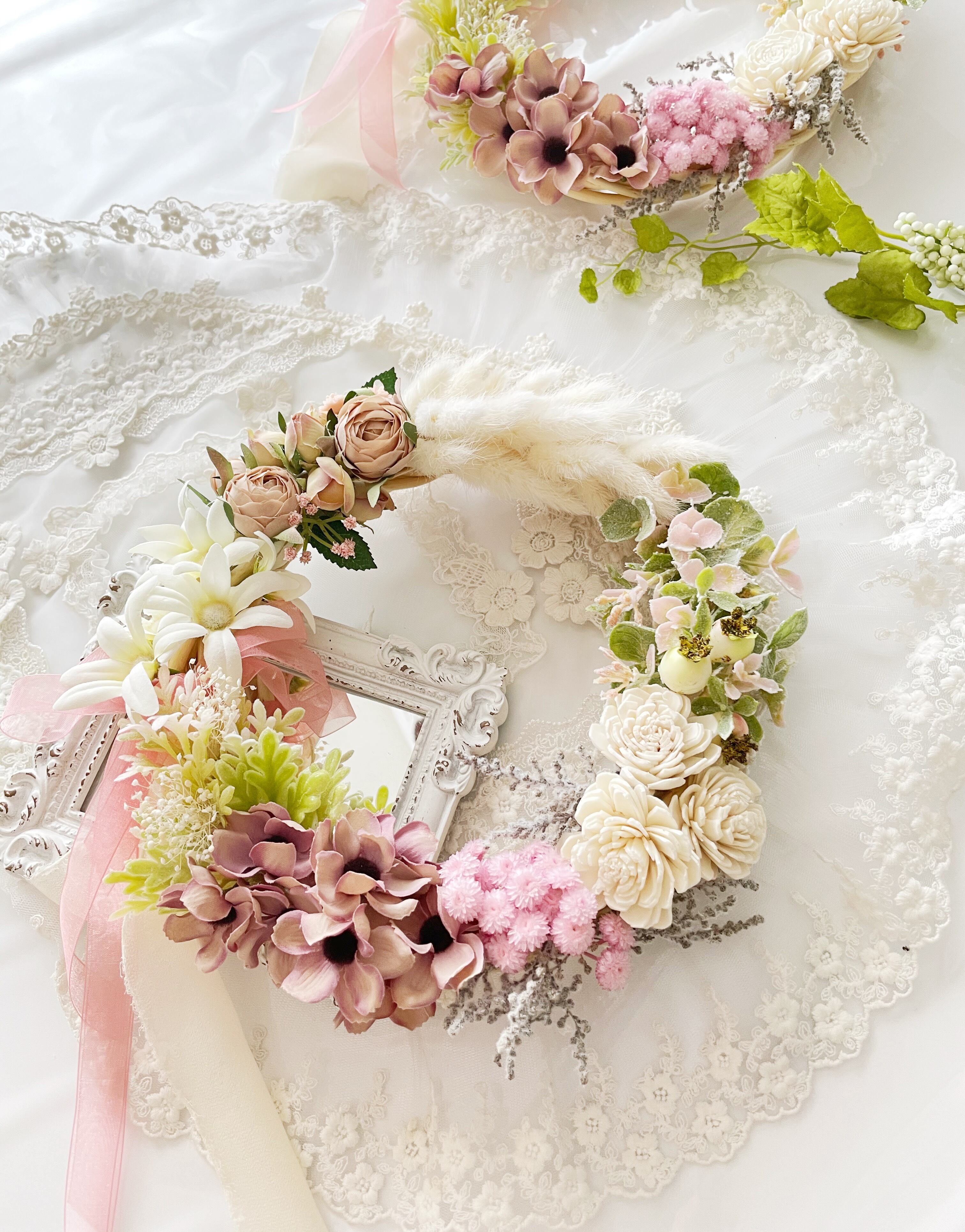 手作りキット*誕生日*結婚*大切な日のフラワーギフト*ニュアンスカラーのアネモネと薔薇のフェミニンリース