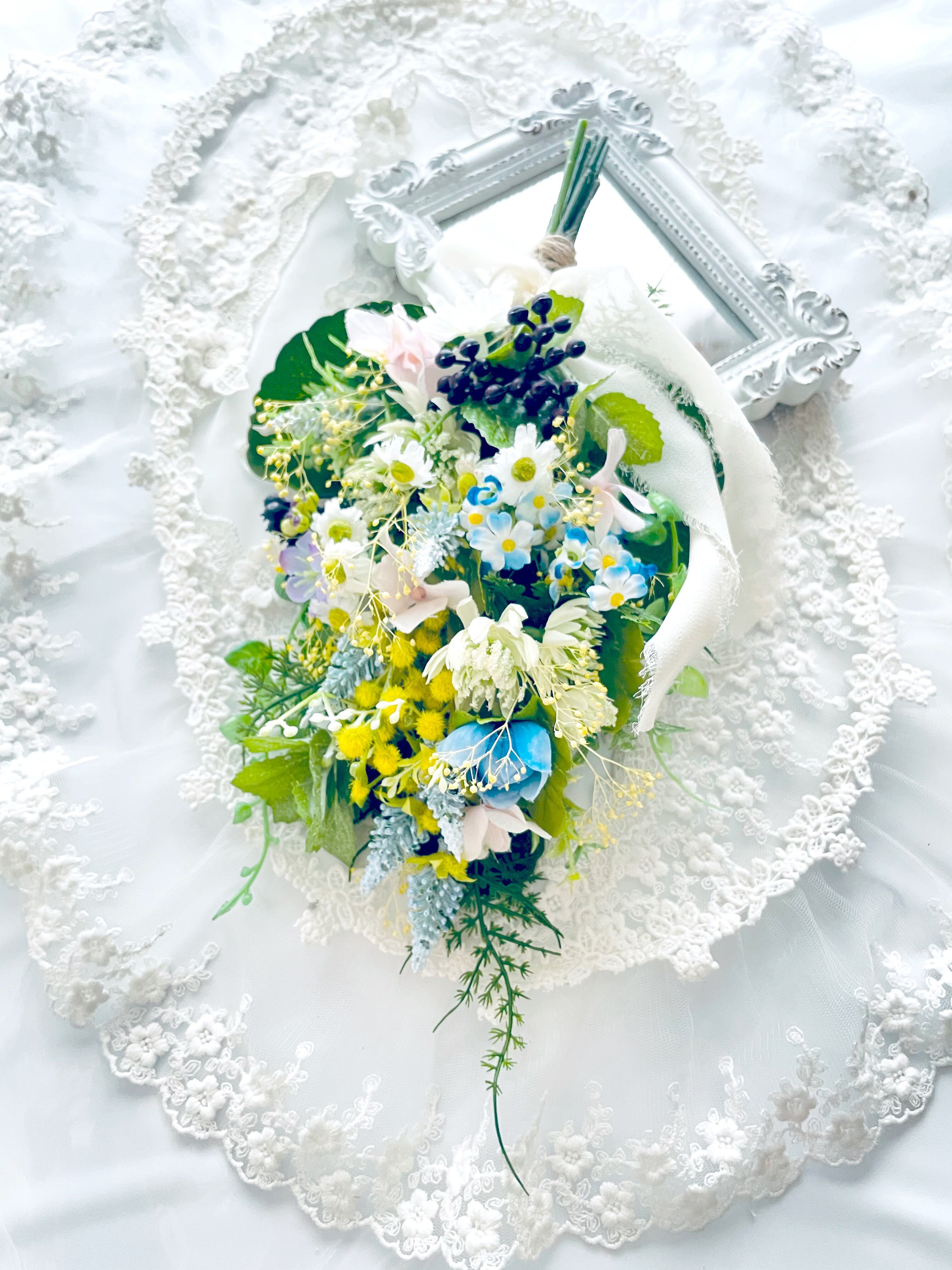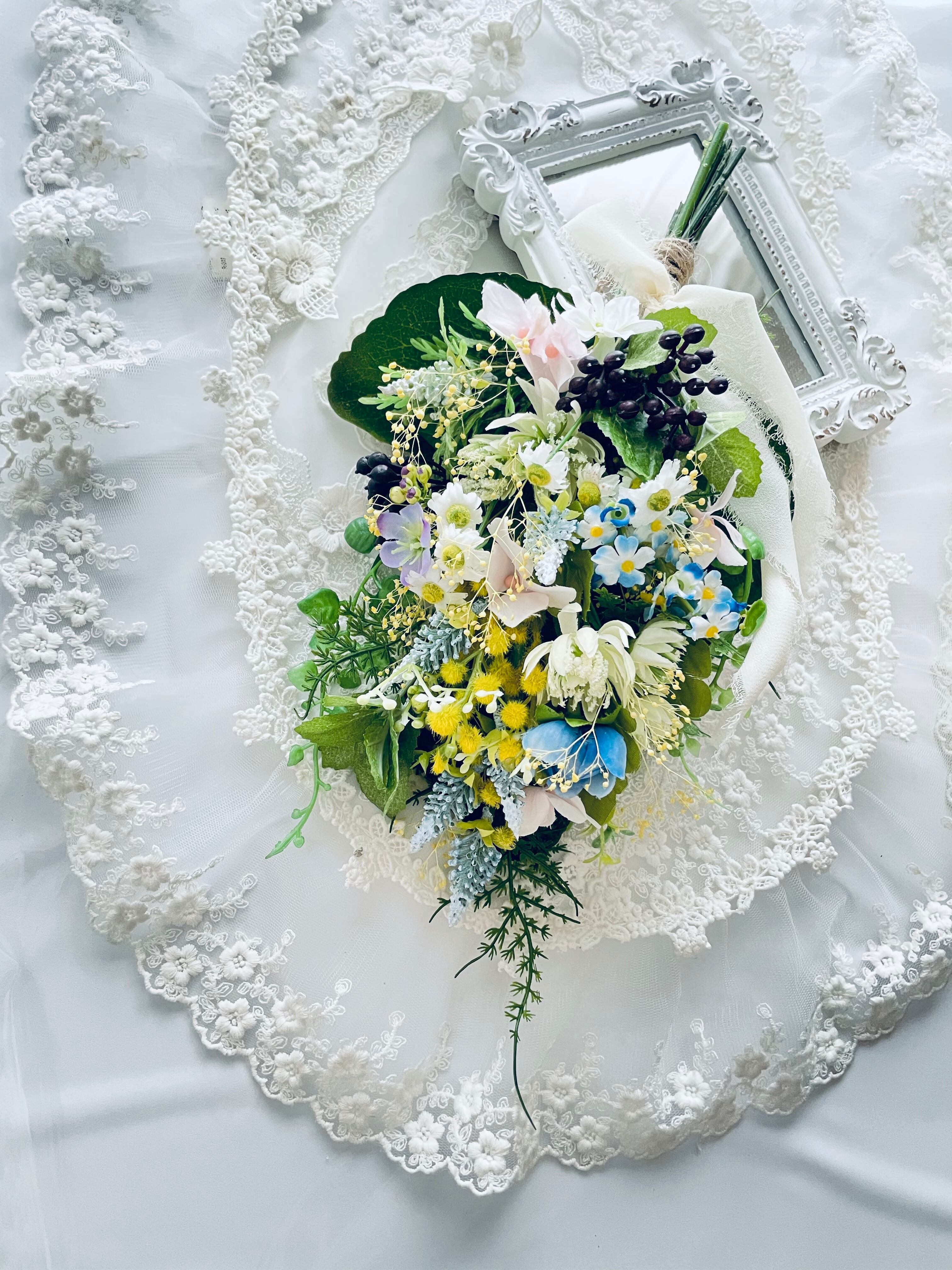 フラワーギフト*初夏の風吹く可愛い小花とグリーンのナチュラルスワッグ