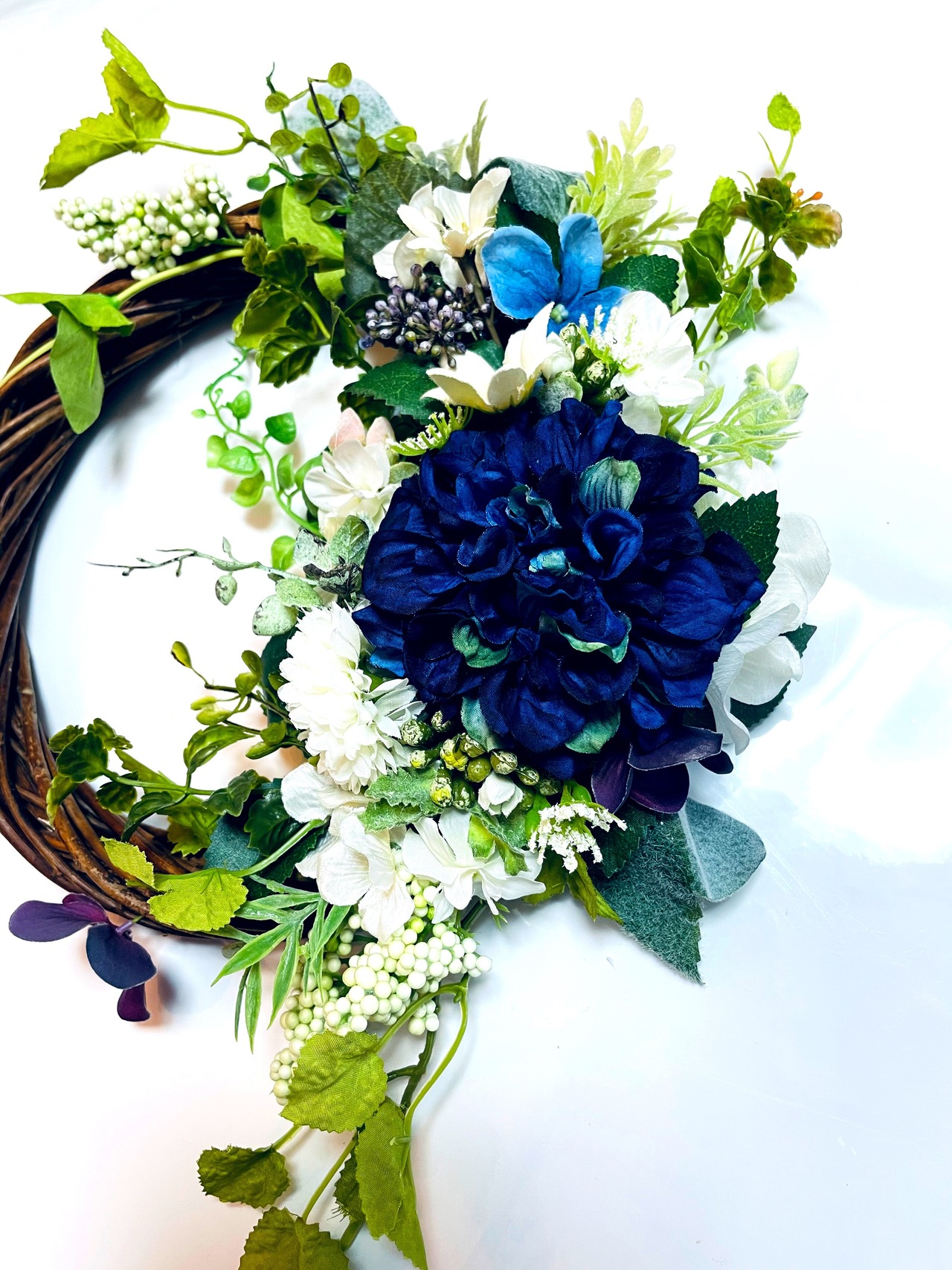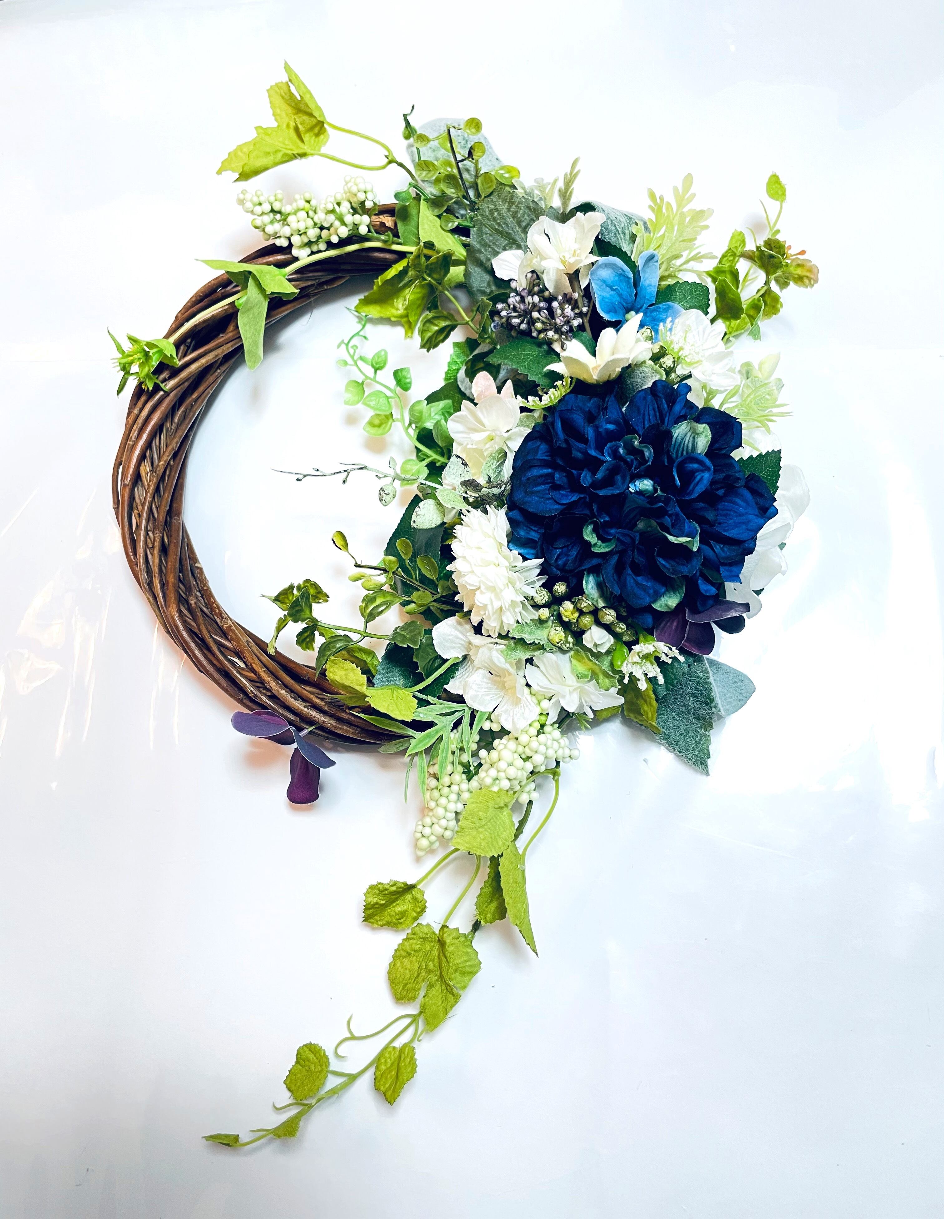 夏に咲く大人綺麗なネイビーダリアとグリーンのアーティフィシャルフラワーリース