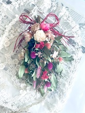 花材は自然の物を使用しておりますので形等お写真と異なることやドライのため、発送中の少しの破損等はどうかご了承下さいませ。